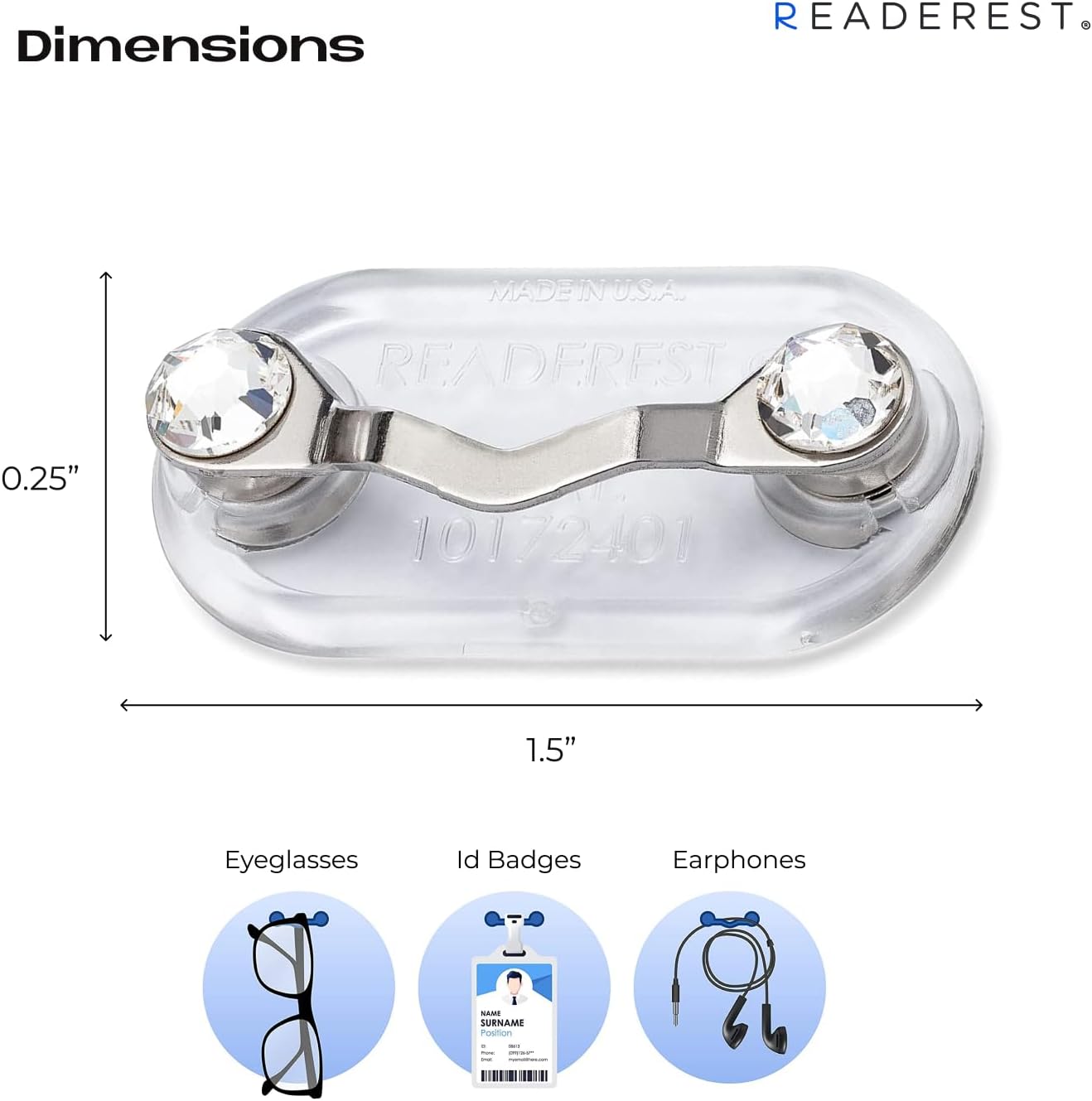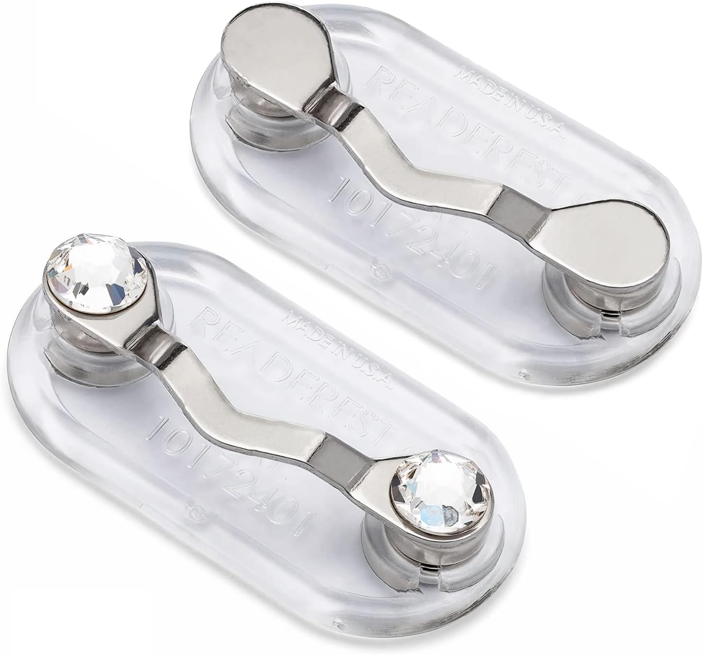Readerest Magnetic Eyeglass Holder (2 Pack), Eyewear Shirt Clip for Men & Women, Glasses Holders for Readers, Sunglasses & Work Badges, USA Made (Stainless Steel + Crystals)
