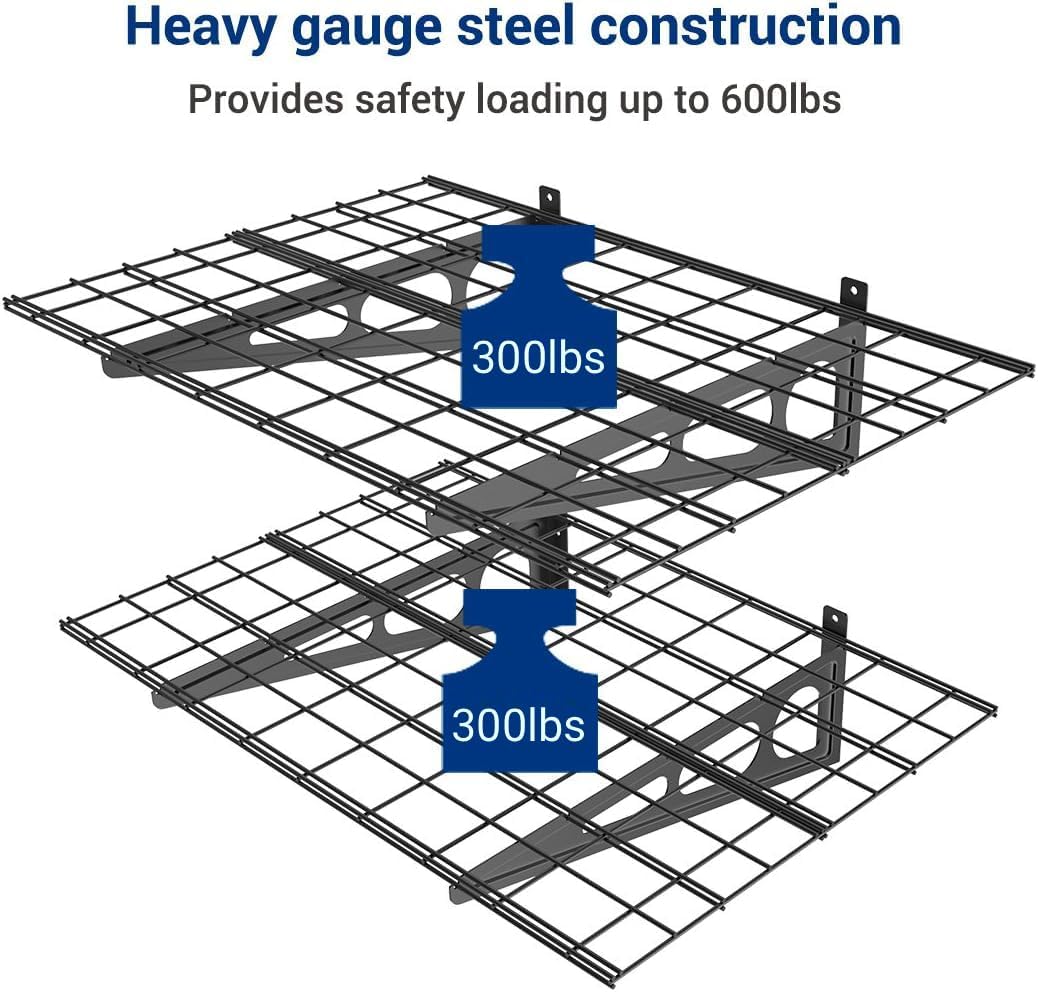 FLEXIMOUNTS 2 Pack 2x4ft Garage Shelving, Wall Shelf Garage Storage Rack, 24-inch-by-48-inch, Black, Classic Series