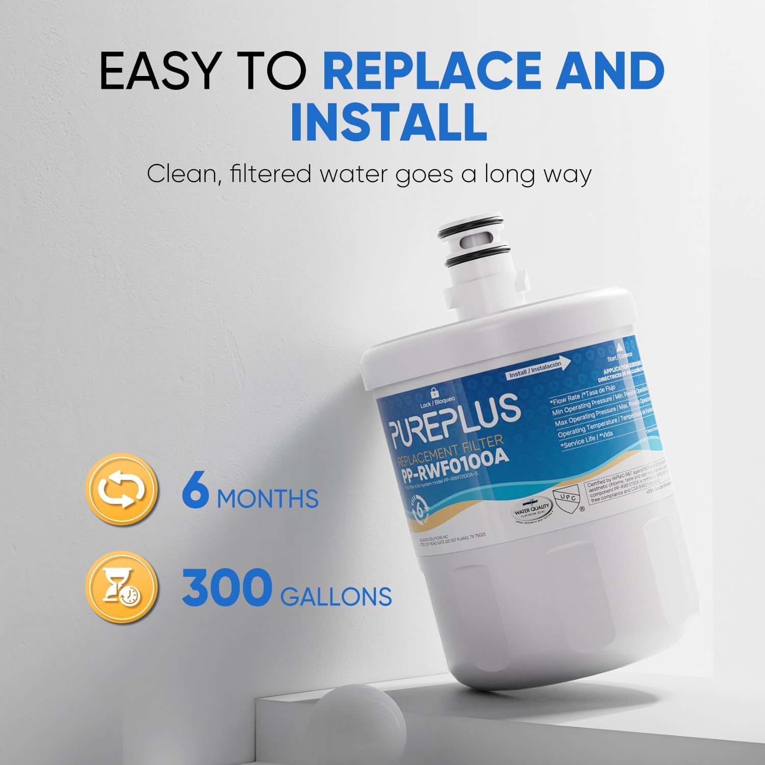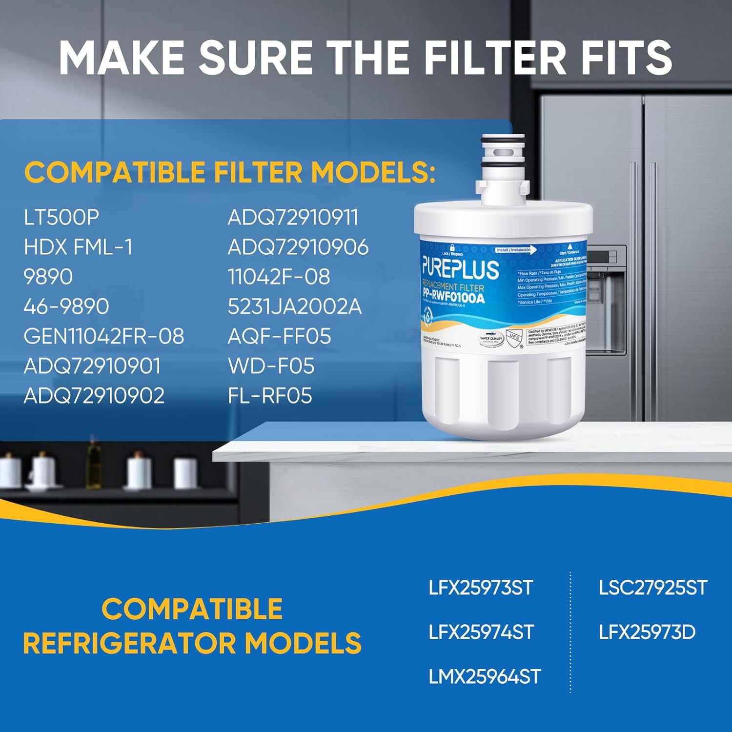 PUREPLUS Replacement for LG LT500P, 5231JA2002A, ADQ72910901, GEN11042FR-08, Kenmore 9890, 469890, HDX FML-1, ADQ72910907, LSC27925ST, LFX25974ST, LFX25973D, Refrigerator Water Filter, 4Pack