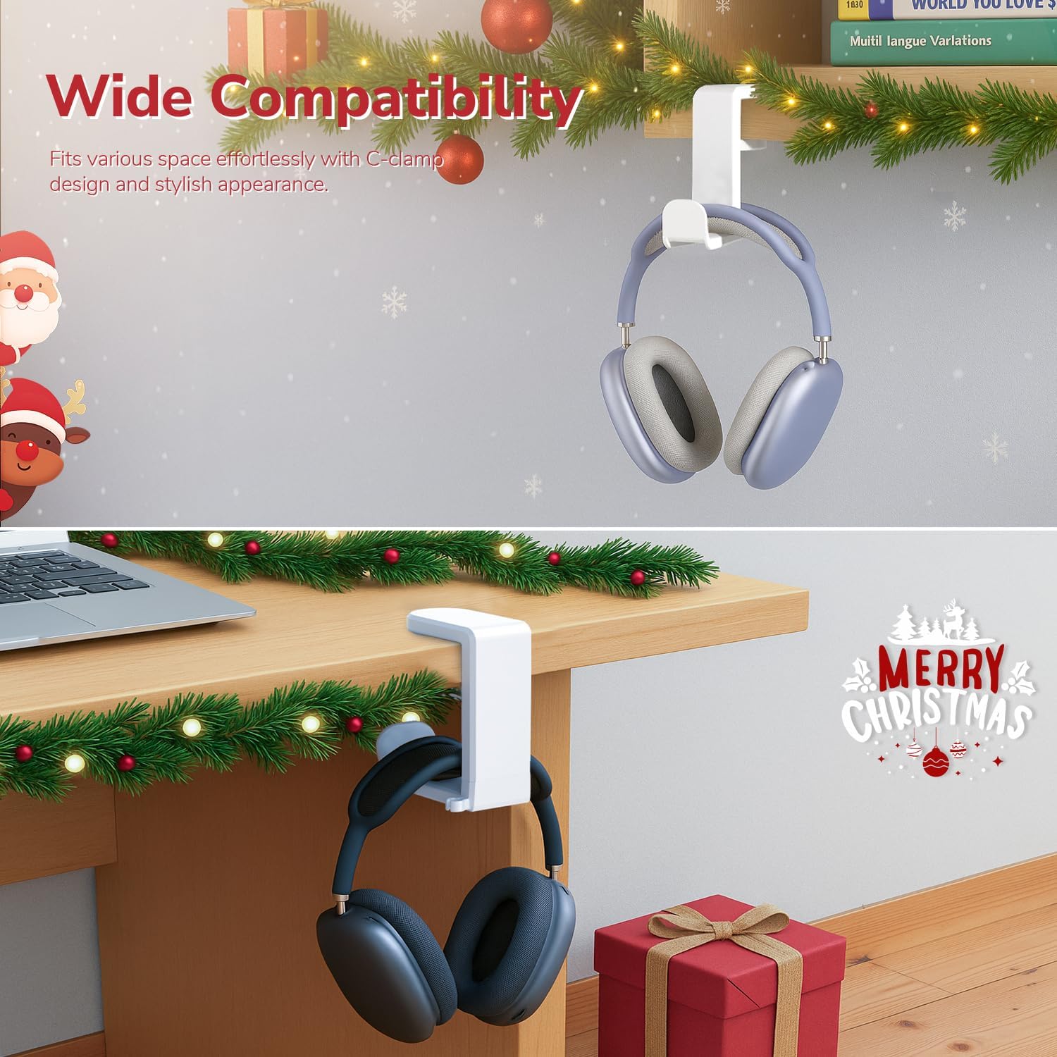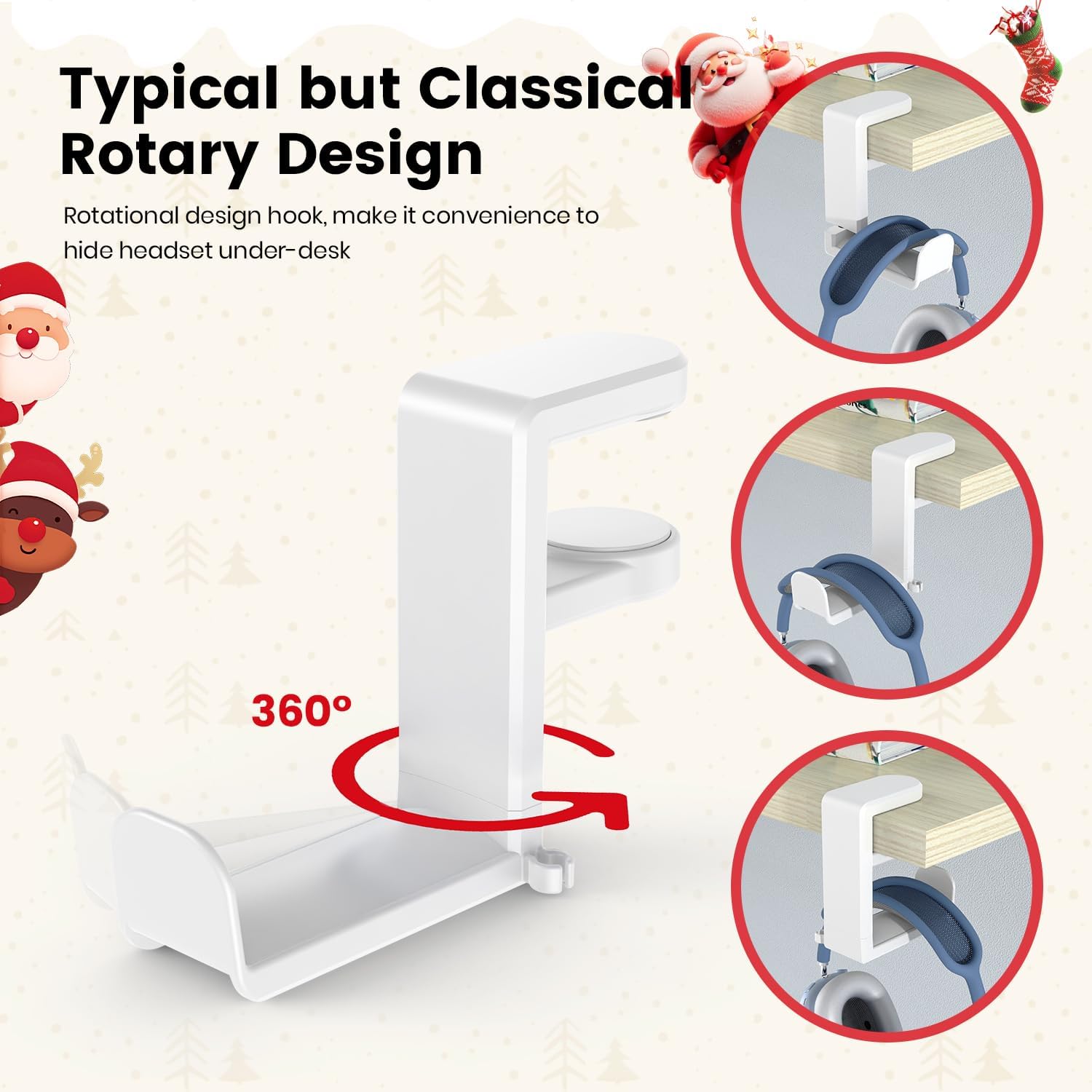 [Xmas Gifts] 3-in-1 PC Gaming Headset&Controller Holder - EURPMASK Headphone Stand w/Adjustable Clamp&2 Controller Holder&Rotating Arm&Cable Organizer,Christmas Card,Bag,Box,Stocking Stuffer for Gamer
