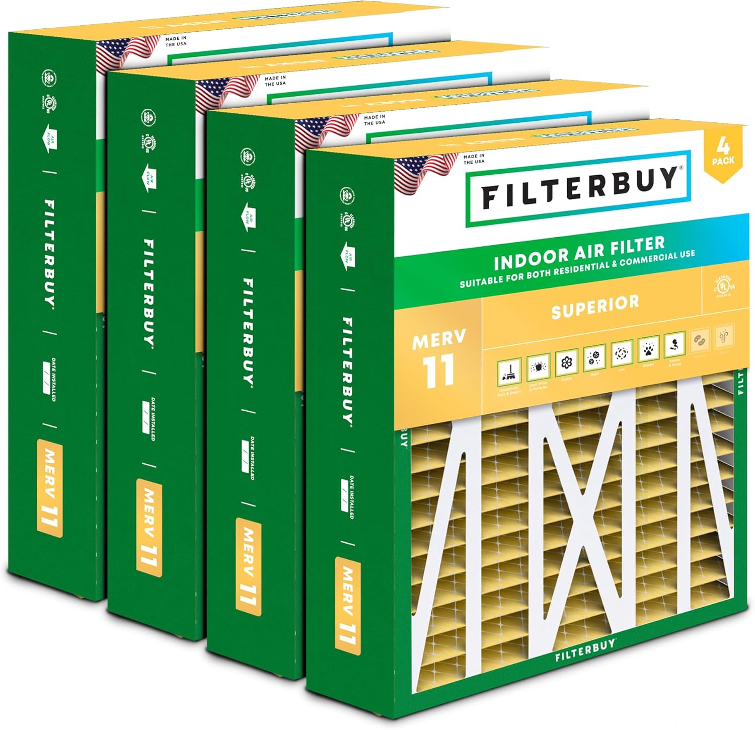 Filterbuy 20x23x5 Air Filter MERV 11 Superior Pet & Allergy Defense (4-Pack), Pleated HVAC AC Furnace Filters for Bryant, Carrier, BDP, Day & Night, and Payne (Actual Size: 19.81 x 22.56 x 4.25)