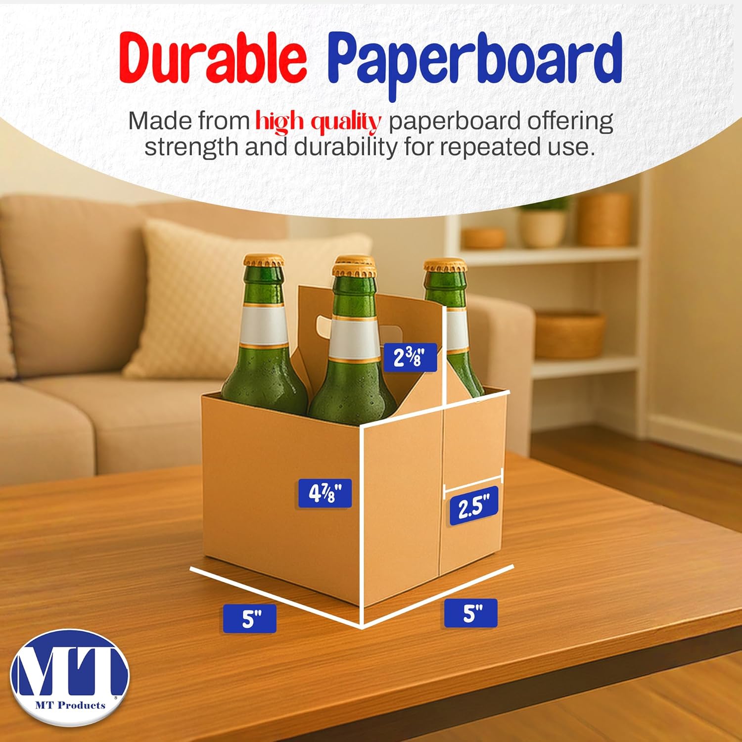 MT Products Brown 4 Bottle Holder 12 oz. each - Disposable Bottle Carrier for Transport (Pack of 10) - Made in USA