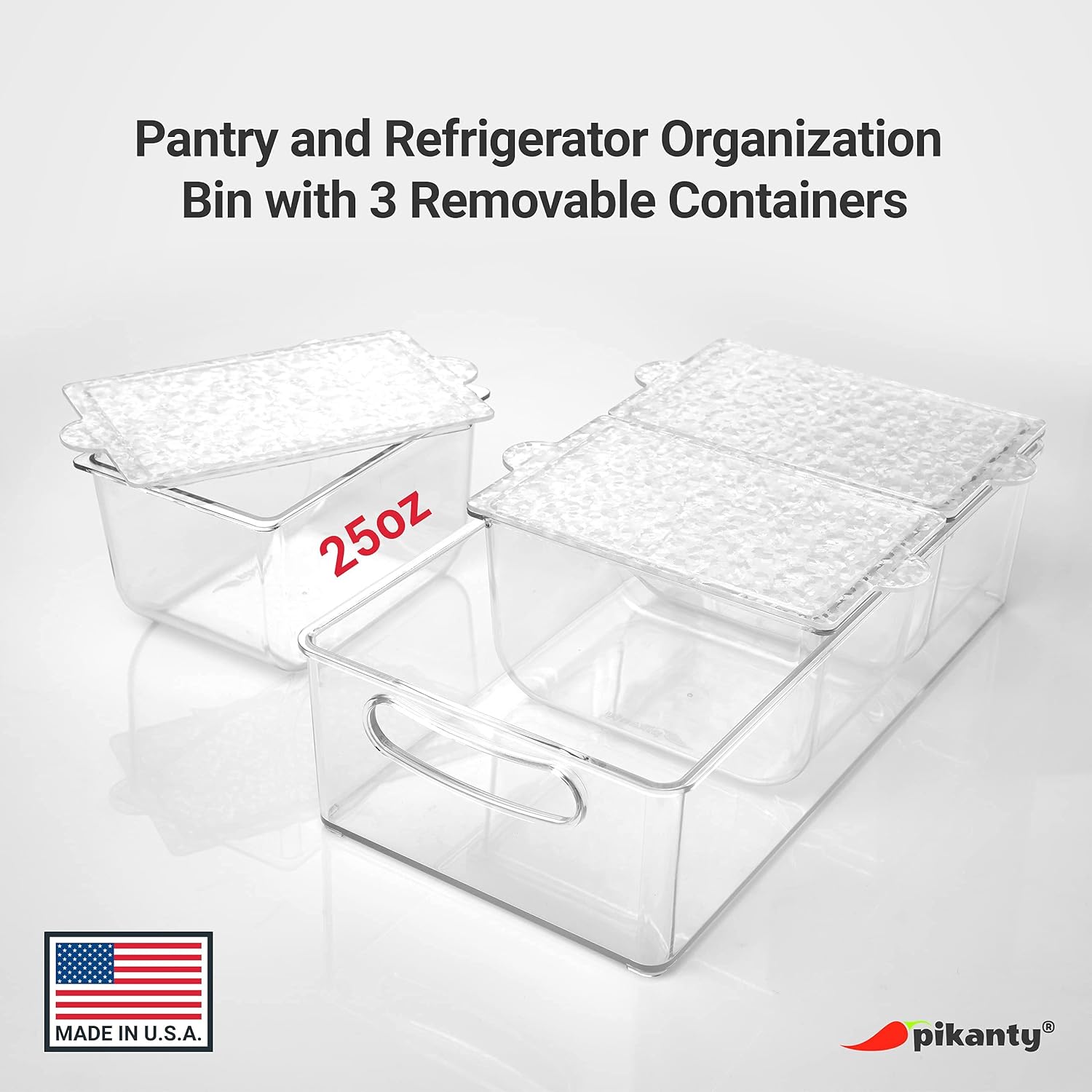 Pikanty - Condiment Server with 3 Removable Containers and Lids - Ideal for Parties, BBQs, and Picnics, Dishwasher Safe, and Made in the USA