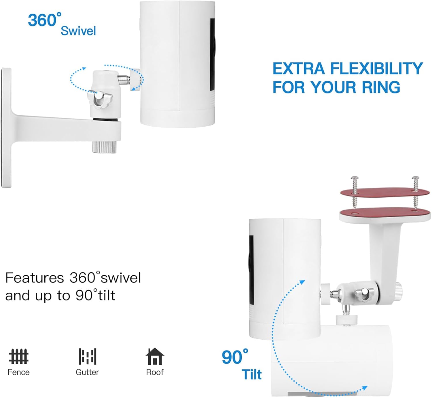 - Universal Compatibility - This mounting bracket is designed for Ring Stick Up Cam & Outdoor Cam Plus 2K and Stick Up Cam Pro, also fit for Eufy Cam, Roelink Argus, Arlo Camera and other cameras with standard 1/4 threaded hole.