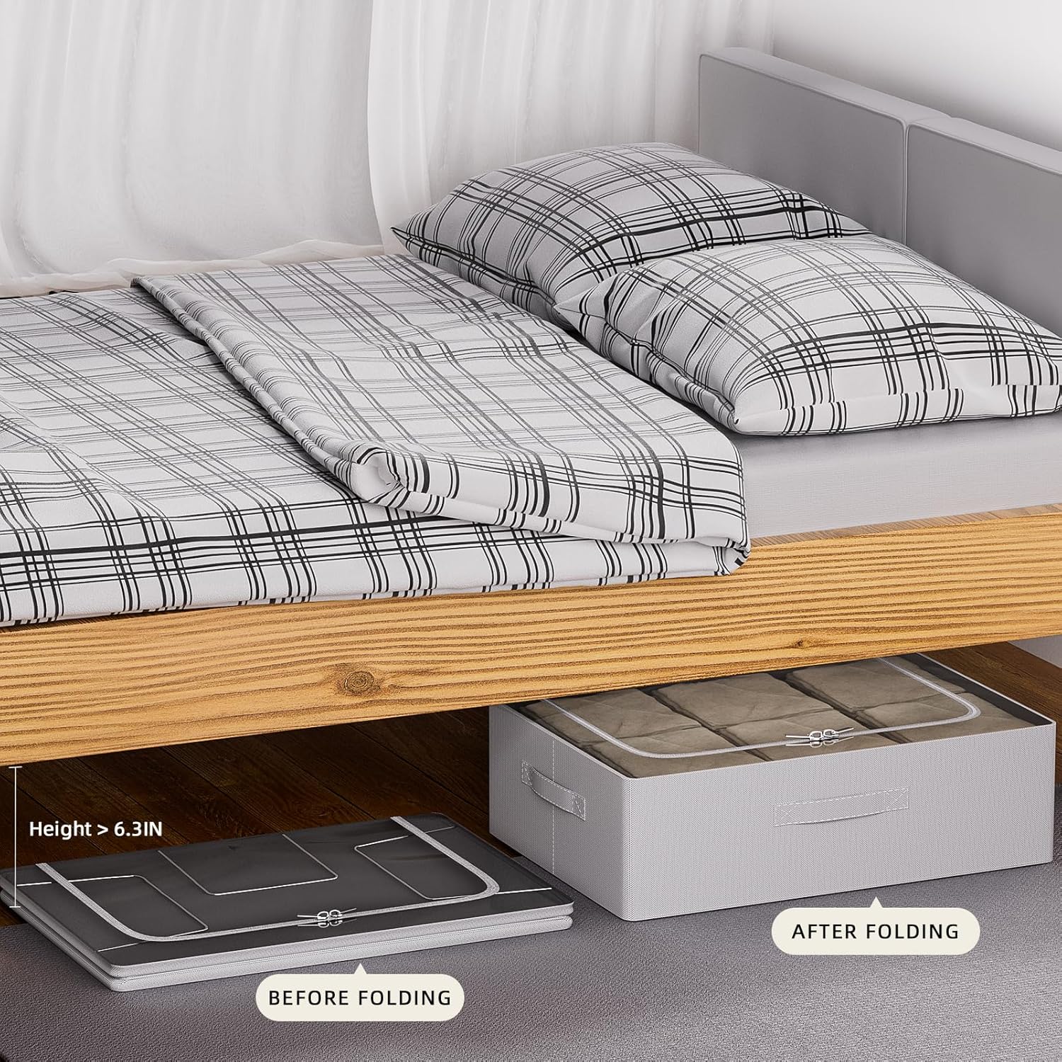 CYhom Under Bed Storage Bins Frame Storage Box Oxford Fabric Sturdy Underbed Container Foldable Stackable Large Capacity Clothes Organizer