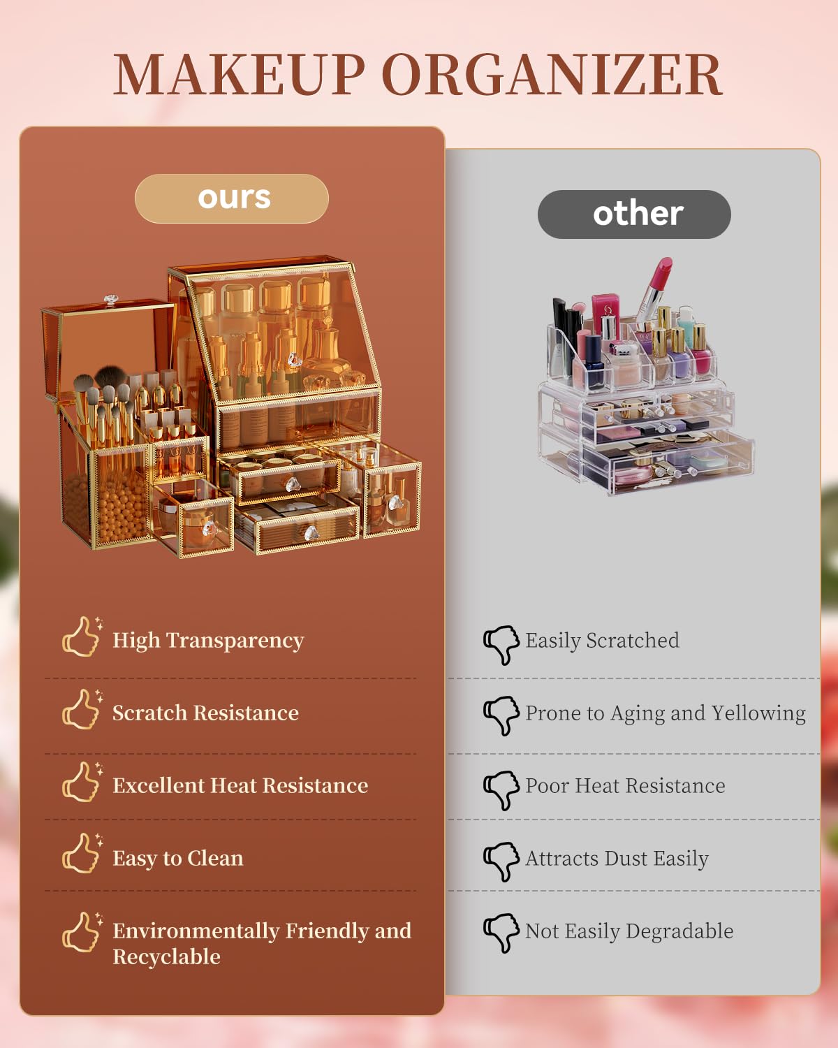 - Customer-Centric Brand: CoralHouse is committed to providing high-quality, multi-functional, and beautiful storage solutions. Our luxury makeup organizer will enhance the organization and aesthetic appeal of your space.