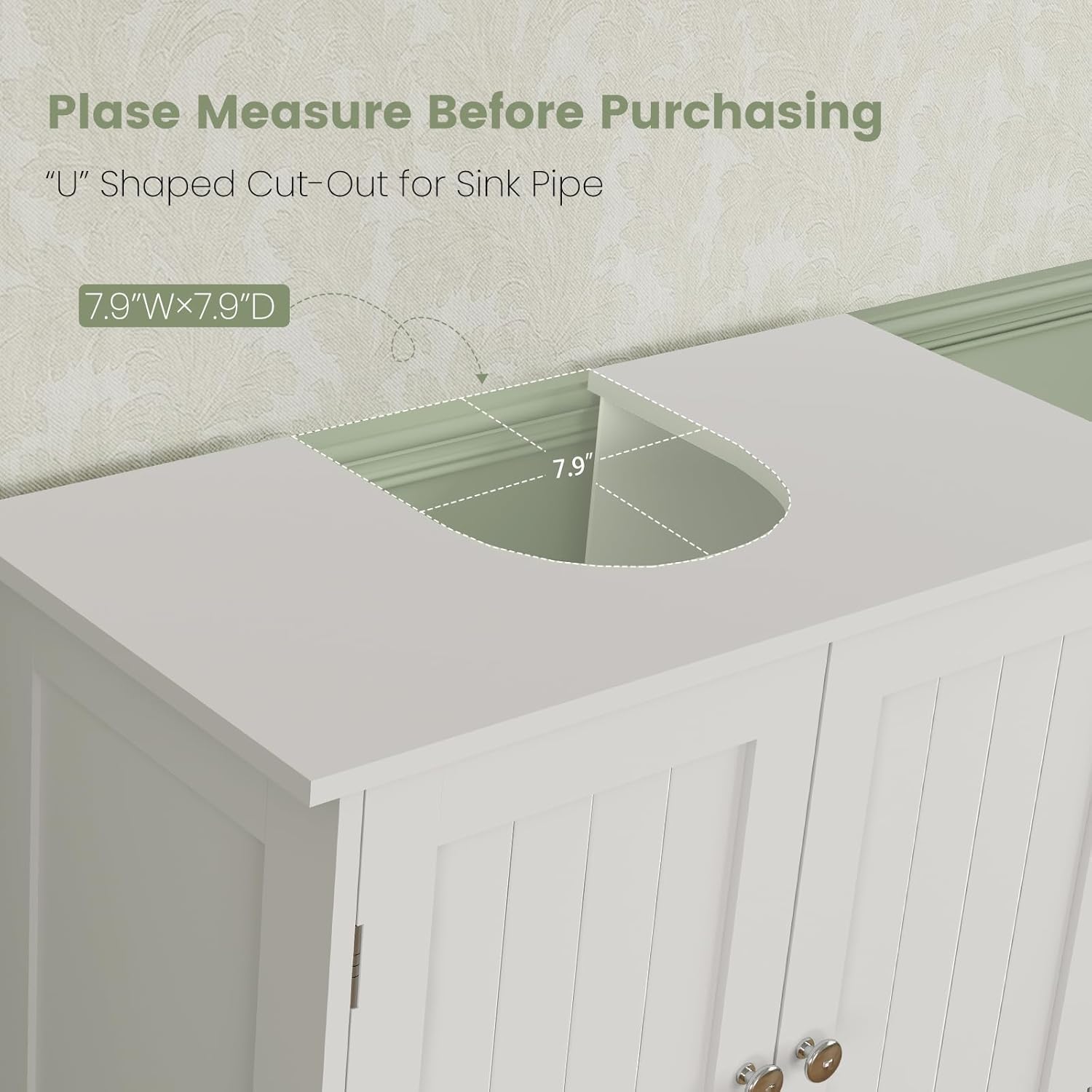 - ☕Space Saving: Suitable for those sinks with pedestal or no-pedestal, embedded in this U-shaped sink cabinet will not only make your bathroom beautiful, but also maximize the use of the space under the sink base. All of this under sink cabinet can be well-organized.