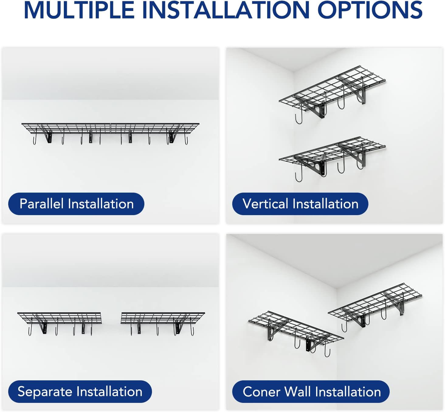 - DIY ASSEMBLY: Wall garage shelving can be installed according to your personal preference. Remove or replace storage hooks as needed.