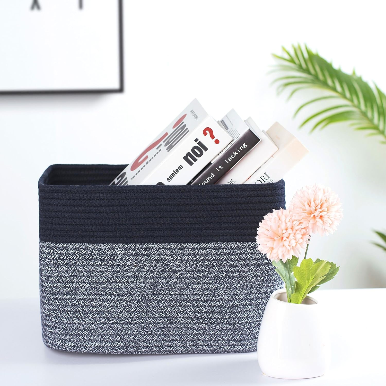 MINTWOOD Design 3-Pack Storage Baskets for Shelves, Playroom and Classroom, Book Basket, Decorative Storage Cube Bins, Woven Closet Organizers, Pantry and Shoe Organizer, Navy Blue