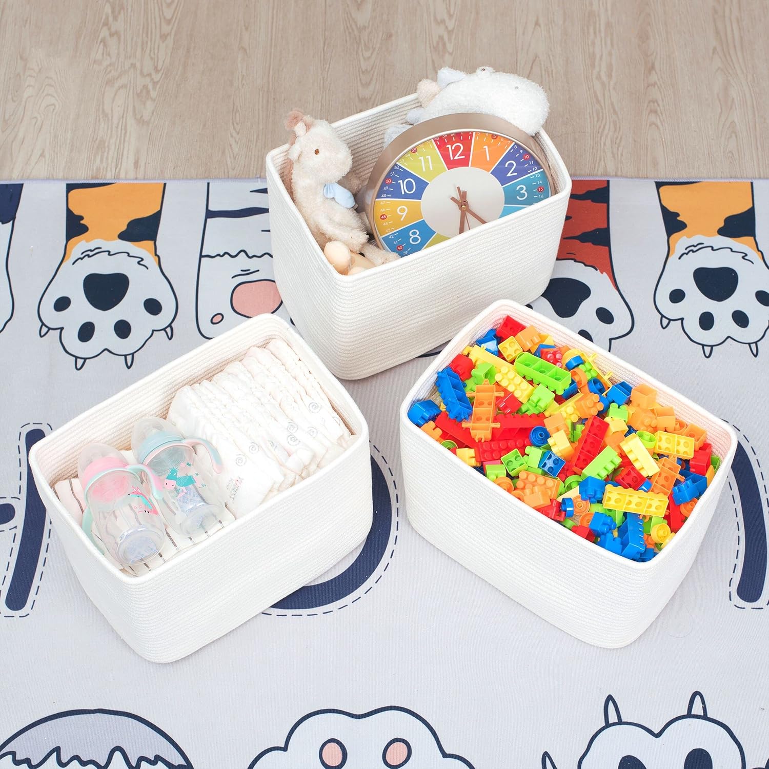 MINTWOOD Design 3-Pack Storage Baskets for Shelves, Playroom and Classroom, Book Basket, Decorative Cube Bins, Woven Closet Organizers, Baby Nursery Baskets, Creamy White