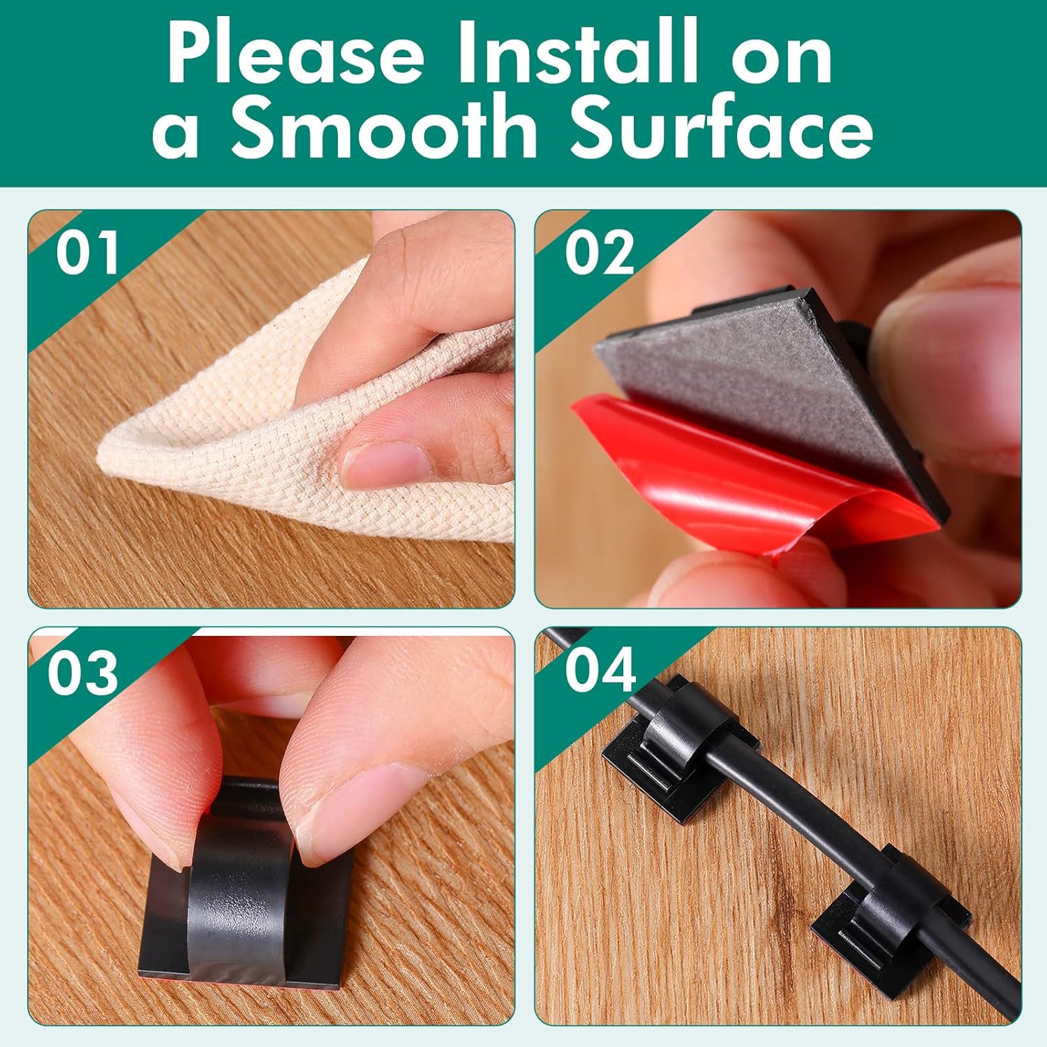 - Size: we offer 3 sizes, you can choose according to your needs, our adhesive cord clips are suitable for most smooth surfaces, including doors, smooth walls, fences, tiles, windows, table, desk (NOT suitable for rough walls, rough wallpaper, brick surface, moist surface