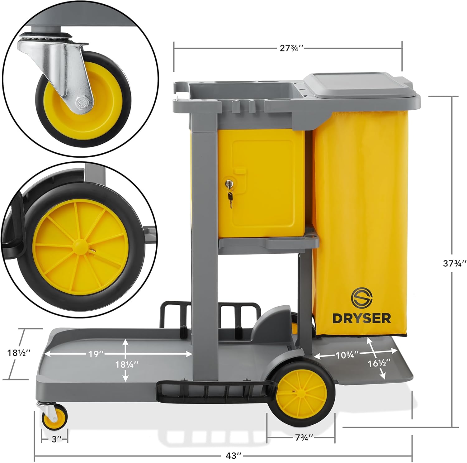 Dryser Commercial Janitorial Cleaning Cart on Wheels - Housekeeping Caddy with Key-Locking Cabinet
