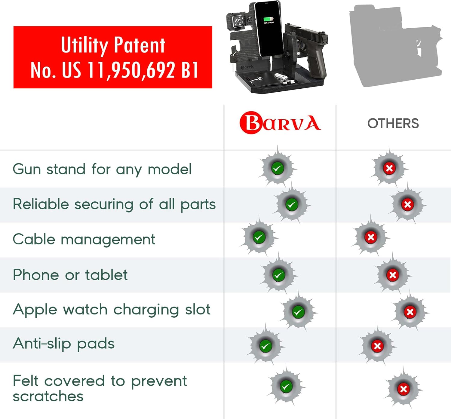 BarvA Phone Docking Station with Patented Adaptive Wood Gun Rack | Night Stand Smart Watch & Phone Stand | Charging Station Desk Organizer | Gun Accessories Storage and Organization