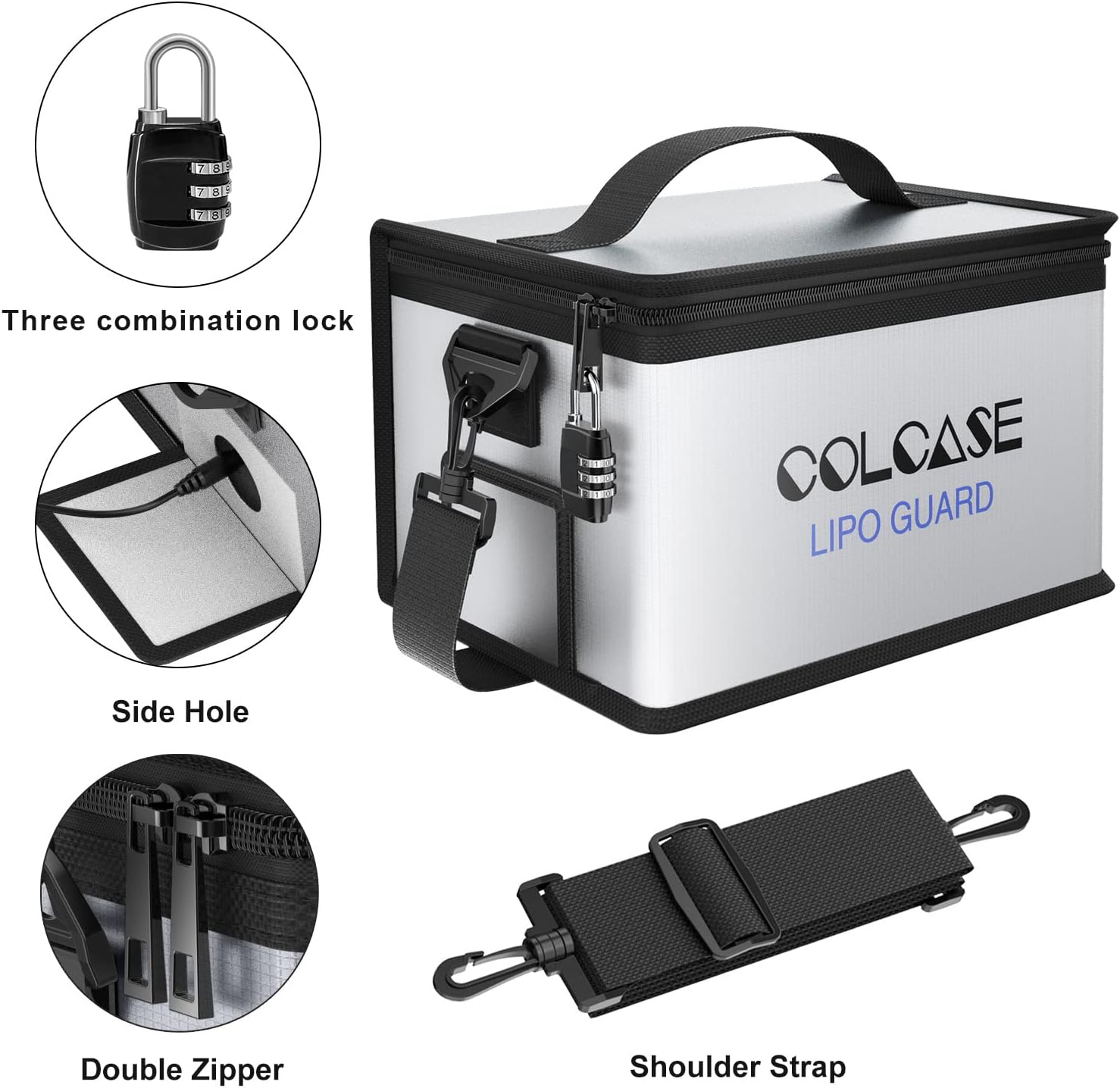 - Safeguard Lipo Battery : Colcase Fireproof LiPo Battery bag is a convenient way of safeguarding your Lipo batteries during charging, transit, and storage. The LIPO SAFE BAG is intended to reduce the chances of damage in the event of a lipo fire.