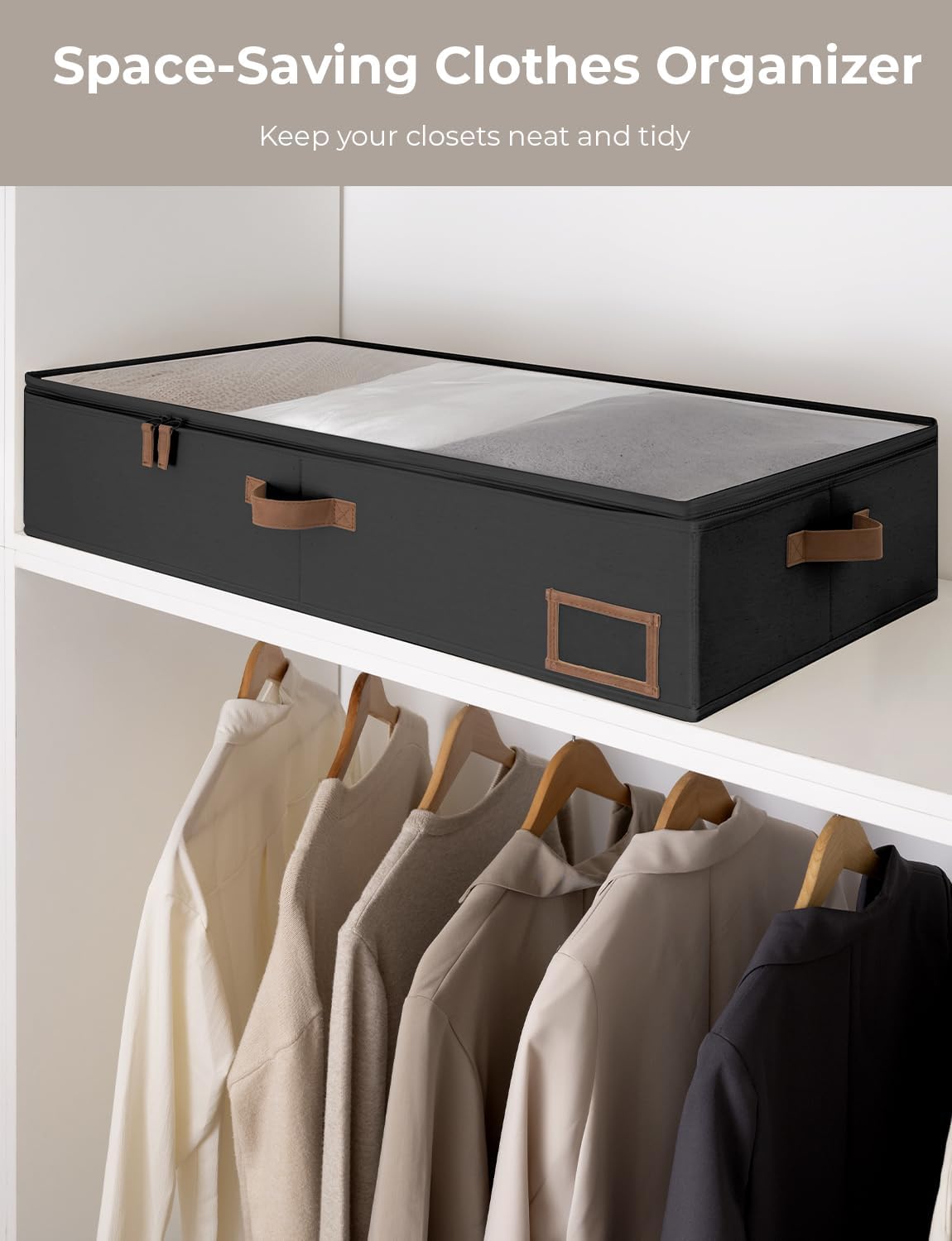 StorageWorks Large Under Bed Storage Containers with Handles and Label Holder, 2 Pack Ultra-thick Fabric Underbed Bins, Closet Organizer for Clothes, Blankets, Sweater