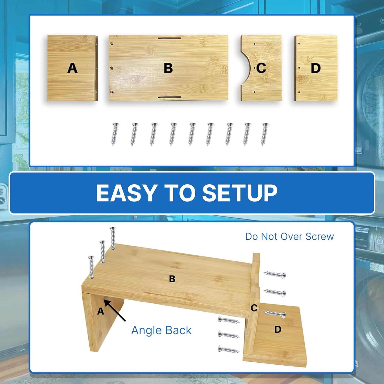 - [WHATβS INSIDE THE PACKAGE] - This wood laundry detergent cup holder and drip tray includes 8-pieces of wooden angled laundry organizer for detergent parts and 2 piece of the elastic strap, and 18 pcs of screws