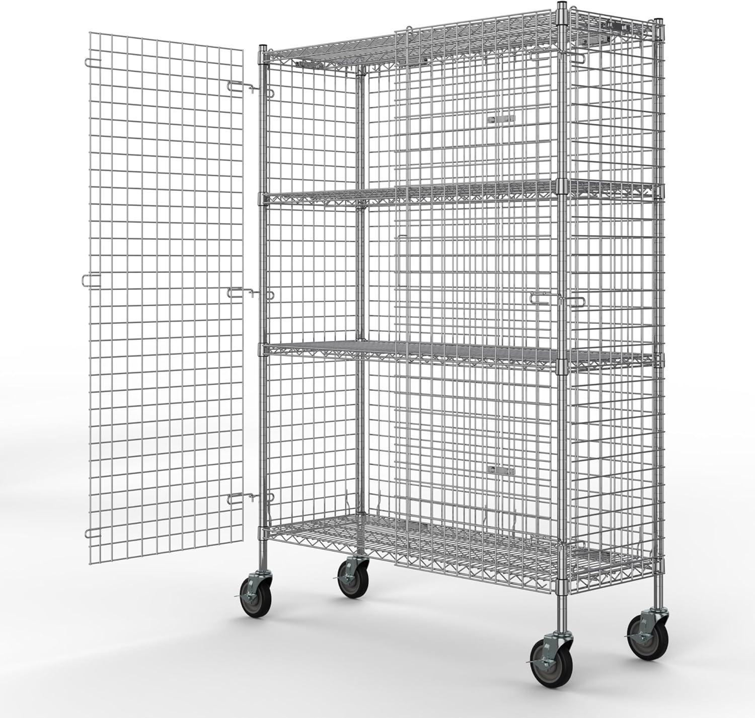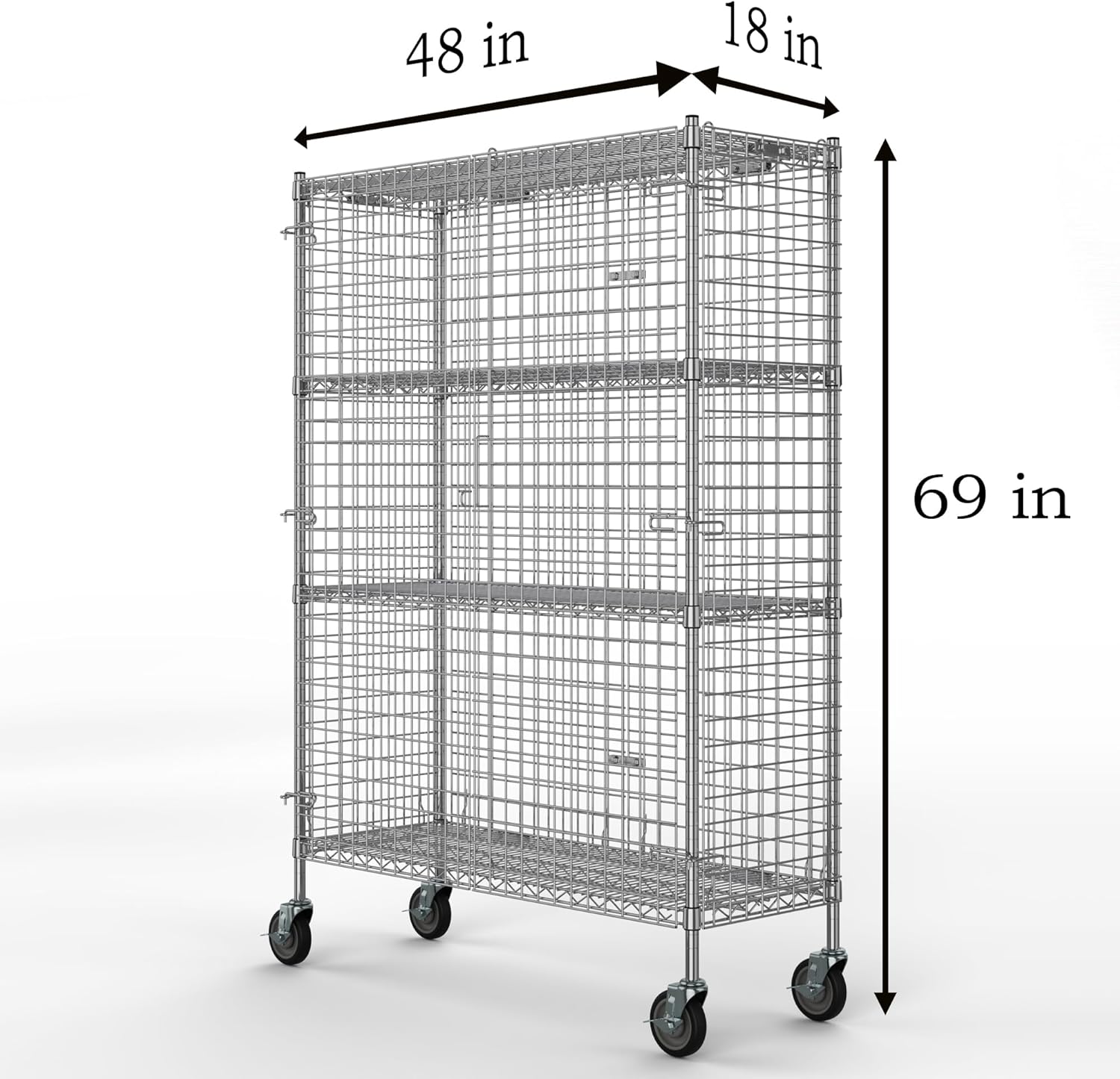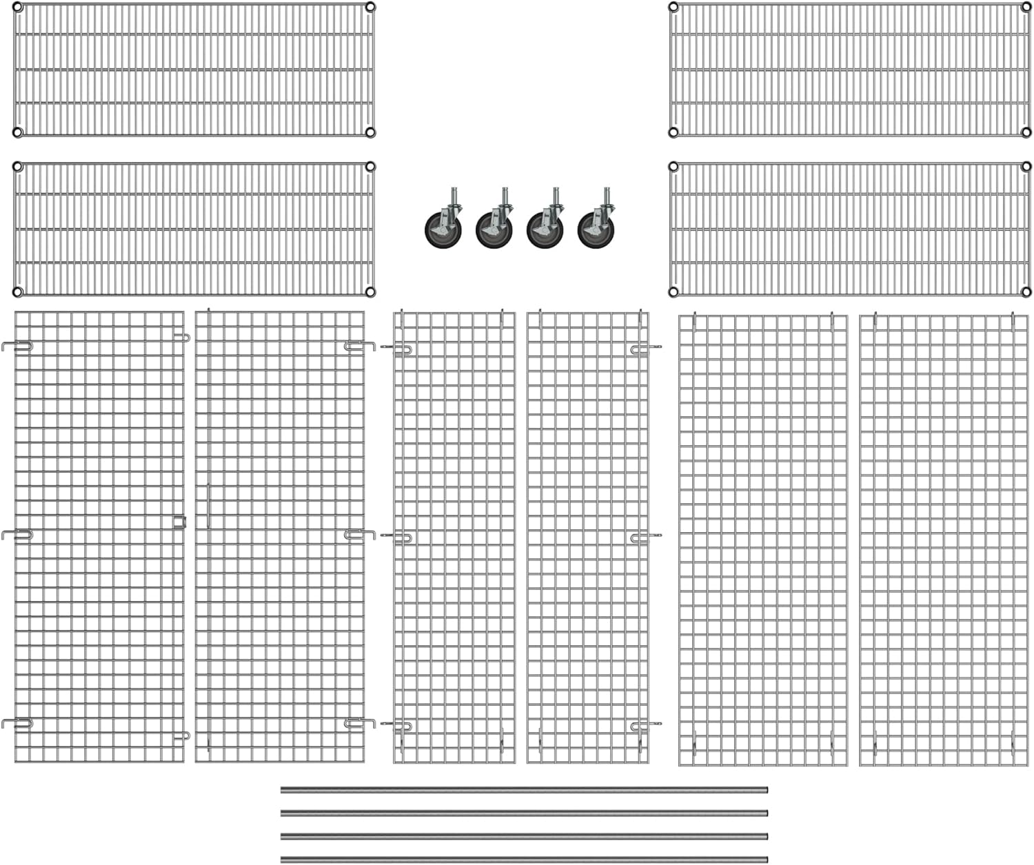 18" W x 48" L x 69" H Heavy Duty Utility Commercial Grade Metal Storage NSF Unit | Chrome Mobile Security Wire Cage Kit