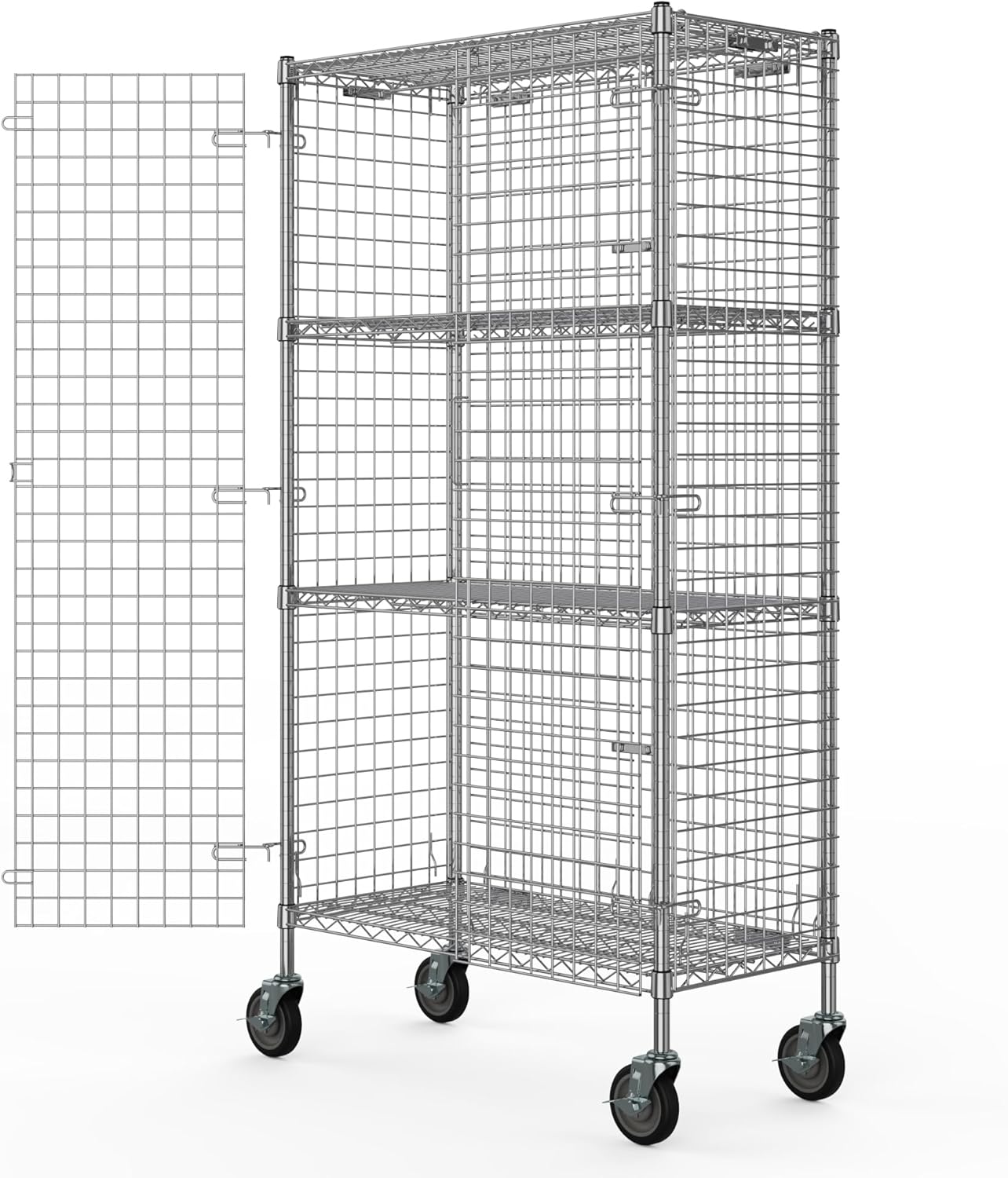 18" W x 36" L x 69" H Heavy Duty Utility Commercial Grade Metal Storage NSF Unit | Chrome Mobile Security Wire Cage Kit