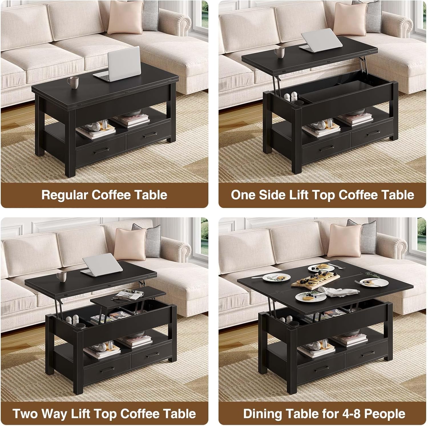 Rolanstar Coffee Table Lift Top, Multi-Function Convertible Coffee Table with Drawers and Hidden Compartment, Converts to Dining Table for Living Room, Home Office,Black