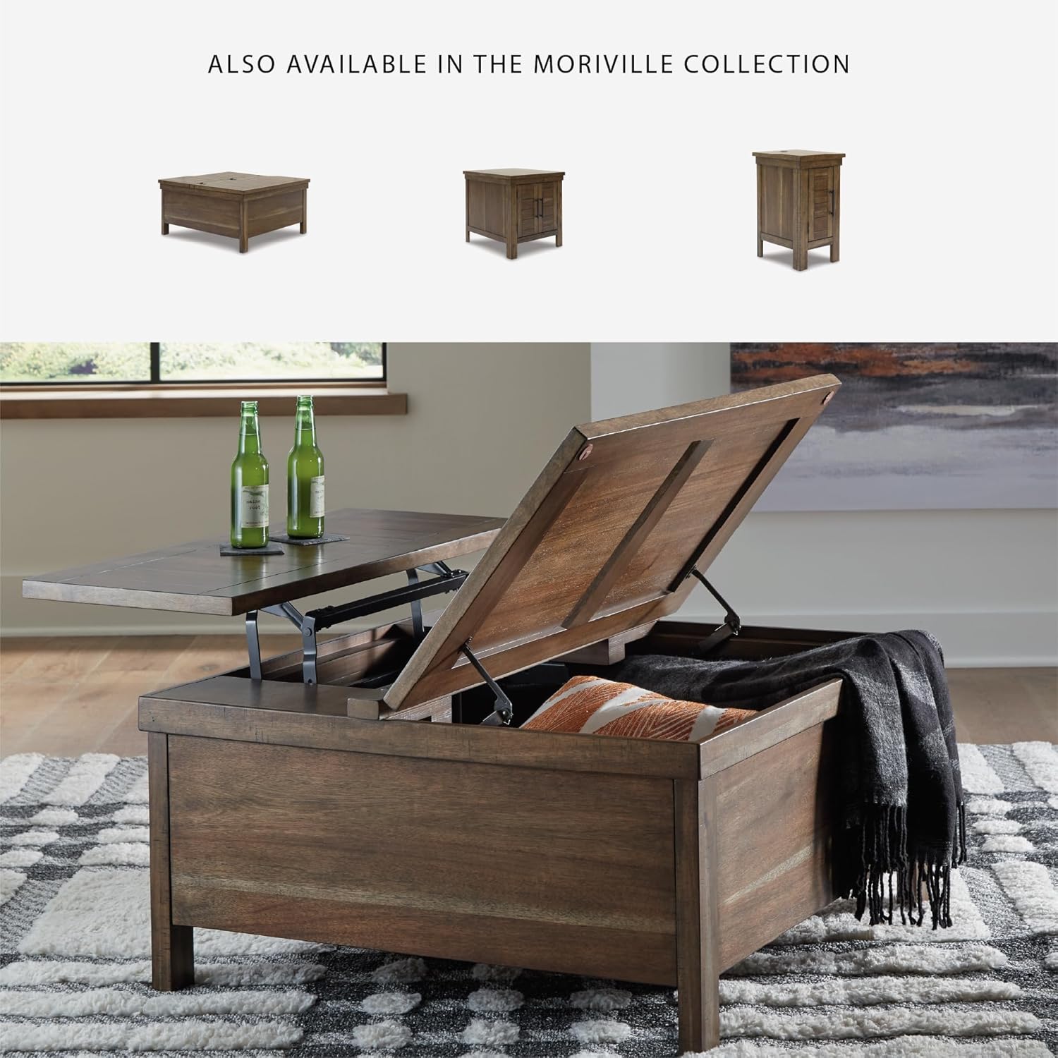 - LIFT-TOP COFFEE TABLE: This table might appear simple at first sight, but a closer look reveals beauty in the details. Crafted for form and function, it will serve you well for years to come