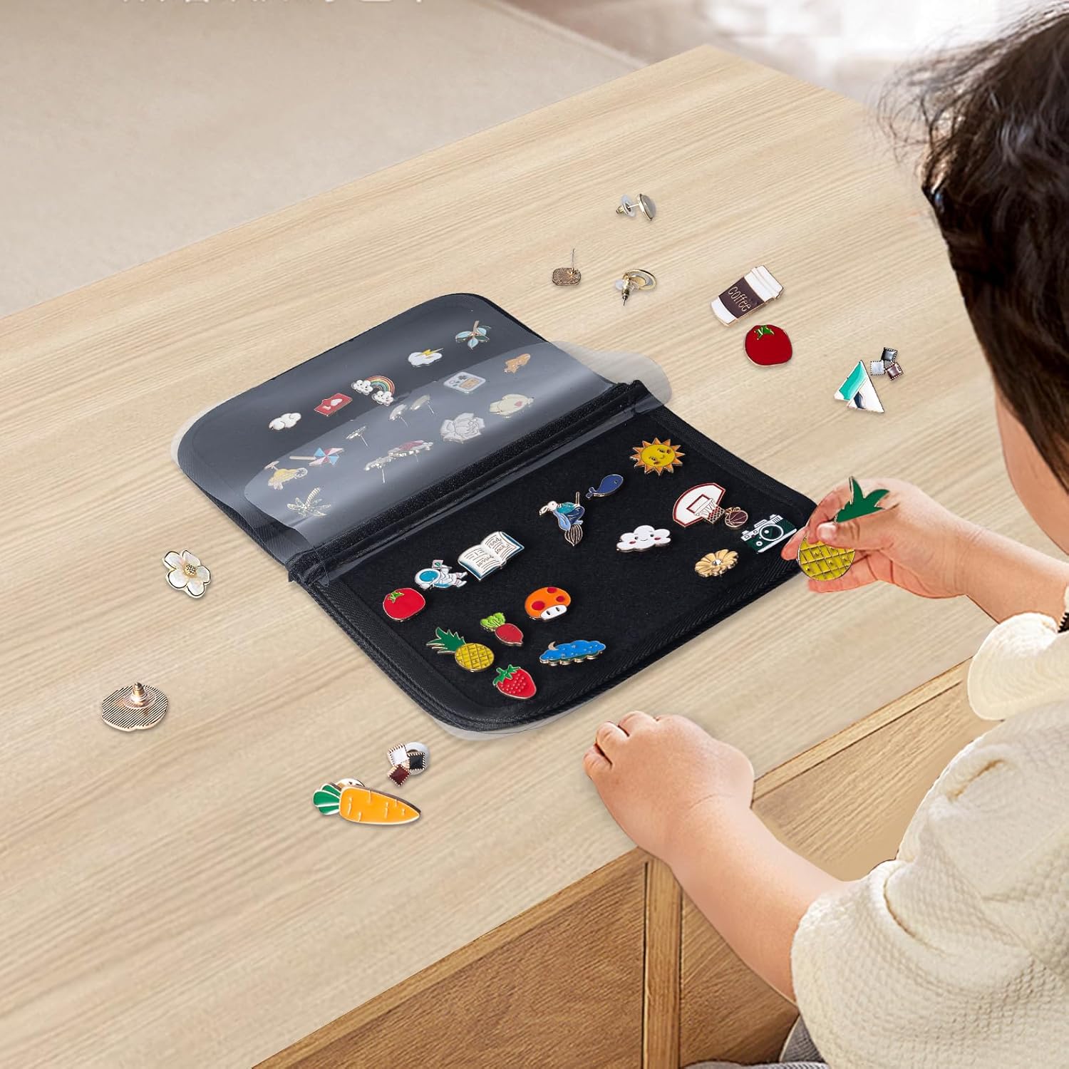 - [Pin Display] The art of enamel pins is displayed through transparent windows, making your collected pins shine brightly in our display bag. It is not only a display stand but also a trading bag, and also a protective box for your collection of pins