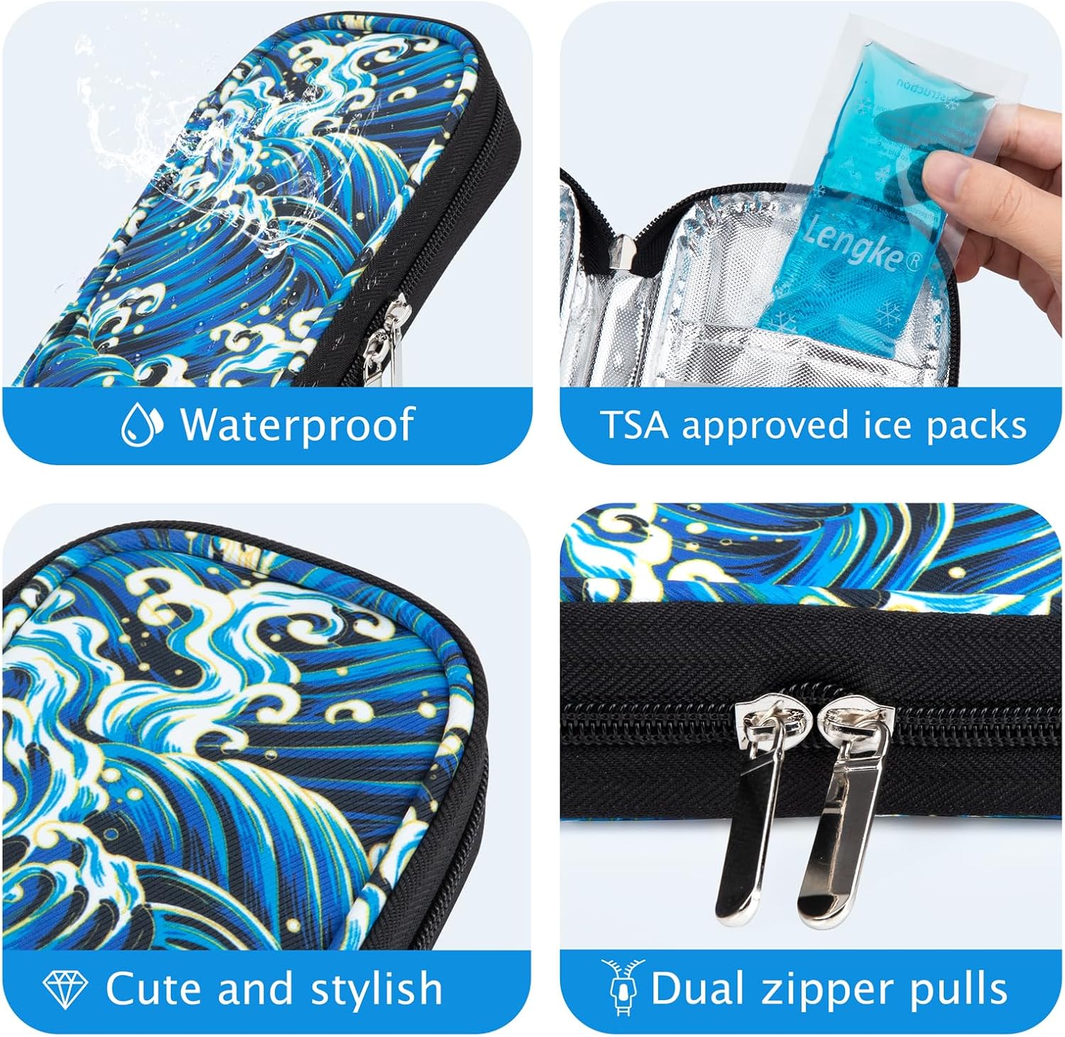 - Good Insulation: This Insulin cooler travel case is made of Oxford cloth material, Lined with double layer aluminum foil and insulating liner that provides a thermal insulating barrier, Diabetic travel case keep medicine cool while traveling.
