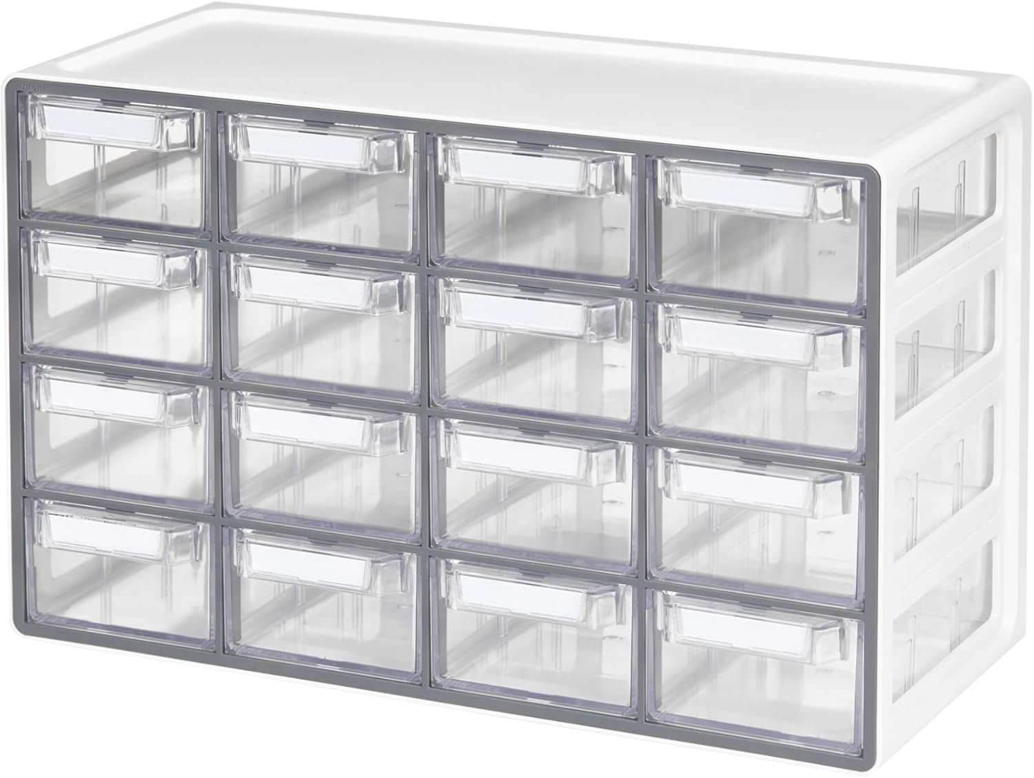 Blue Ginkgo Medium 16-Drawer Cabinet – Stackable Clear Organizer for Hardware, Beads, Plastic Bricks, Office, and Craft Storage (Made in Korea, Gray)