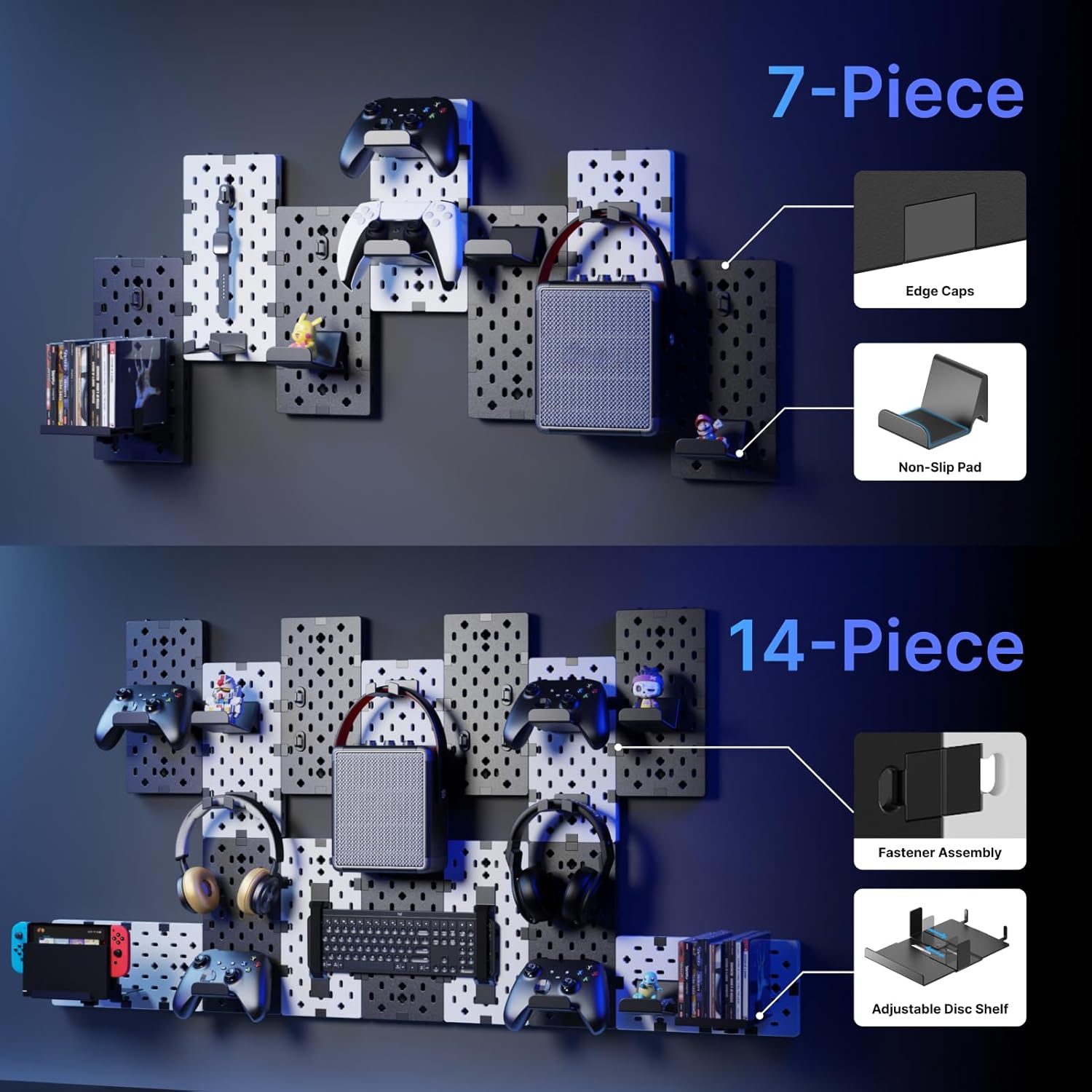 - Stylish & Versatile: Choose from Black, Black & White, or Black & Red, in 7-piece or 14-piece sets. This modular pegboard is easy to install with clear instructions and video guides, making it the perfect addition to your gaming room accessories.