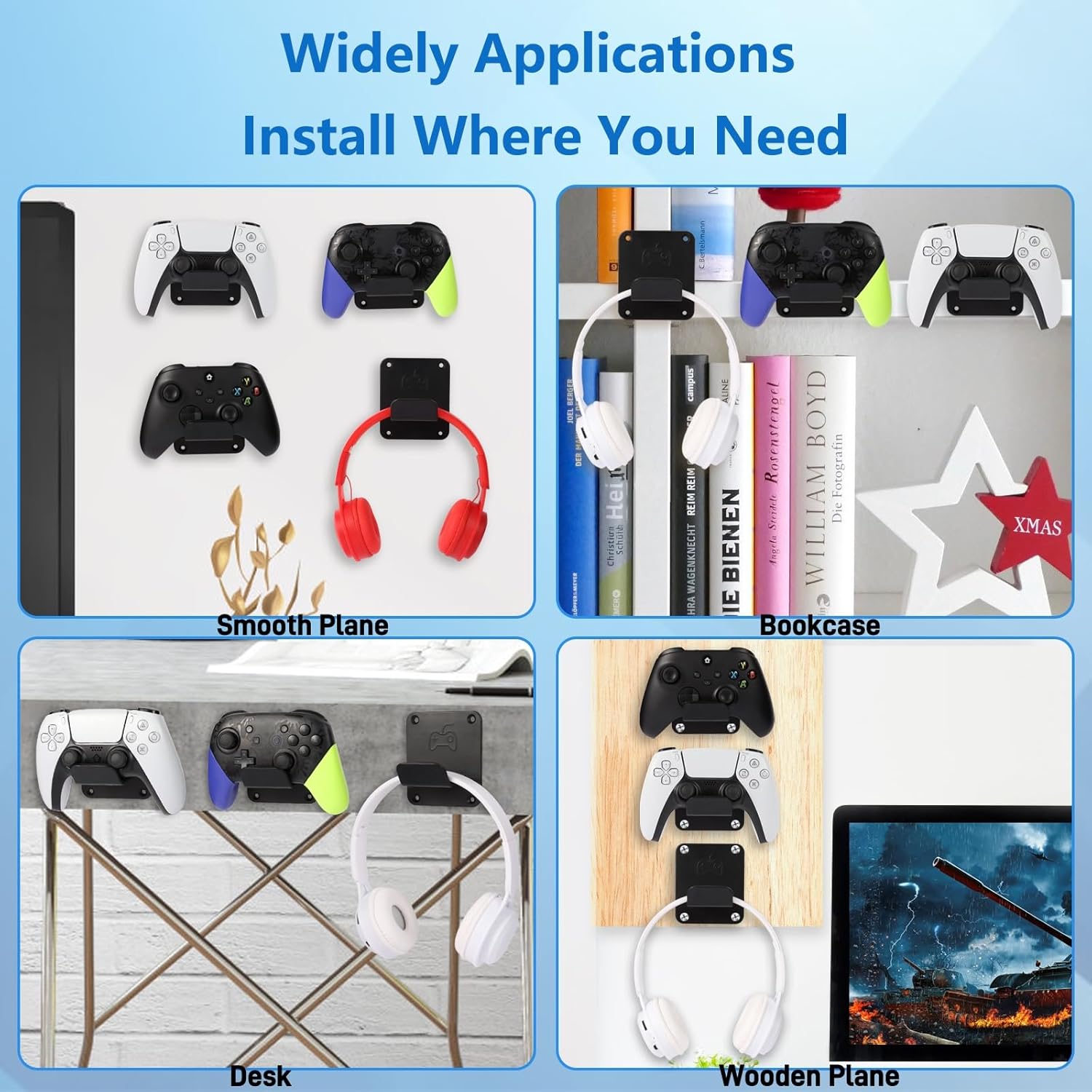 - 💠Universal Controller Holder:The controller wall mount holder compatible with all universal controllers,and covered with high-grade non-slip silicone,give your lovely controllers and headphones a more secure home.