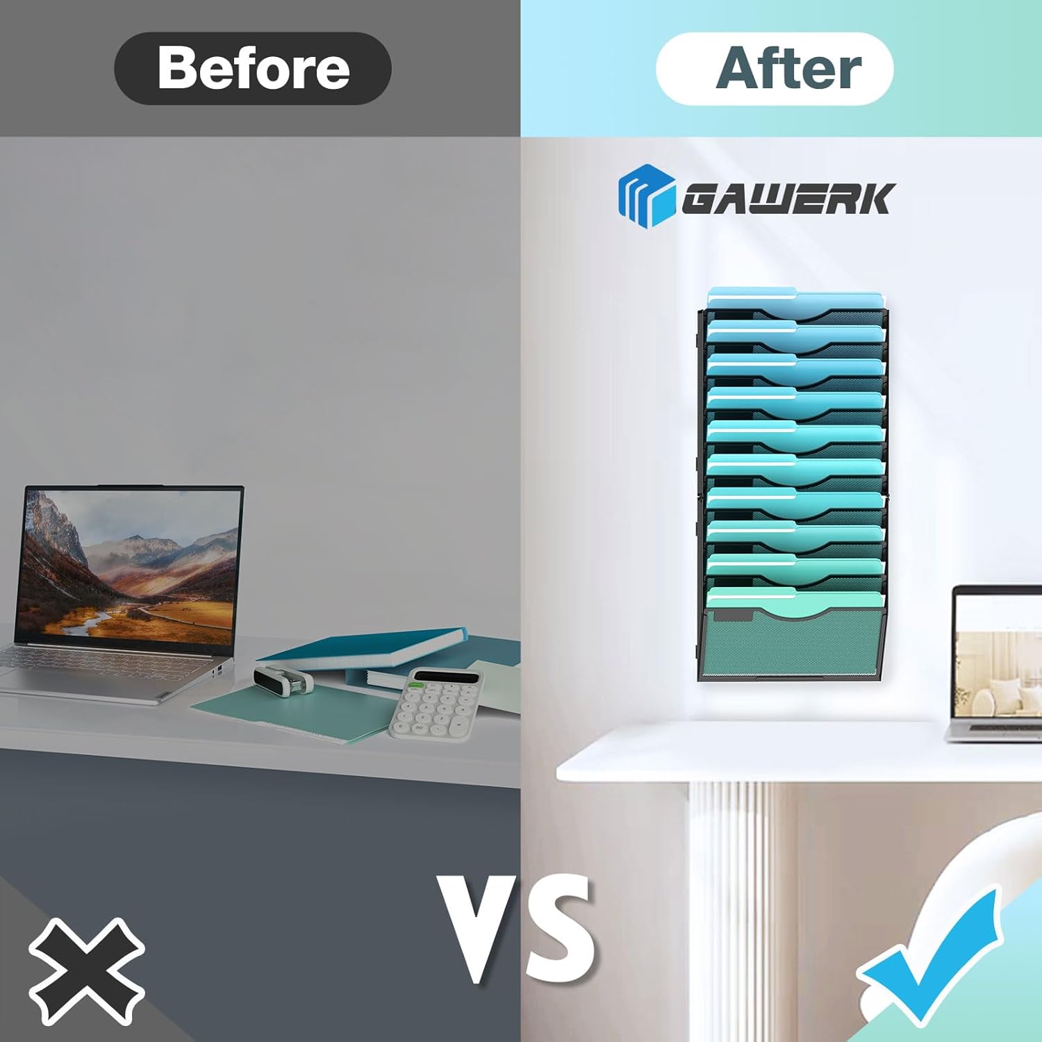 - Sturdy Metal Structure - Gawerk hanging paper organizer is made of high-quality metal materials. This magazine rack wall mounted has a powder coating, oxidation resistance and rust prevention, effectively prolonging its service life.