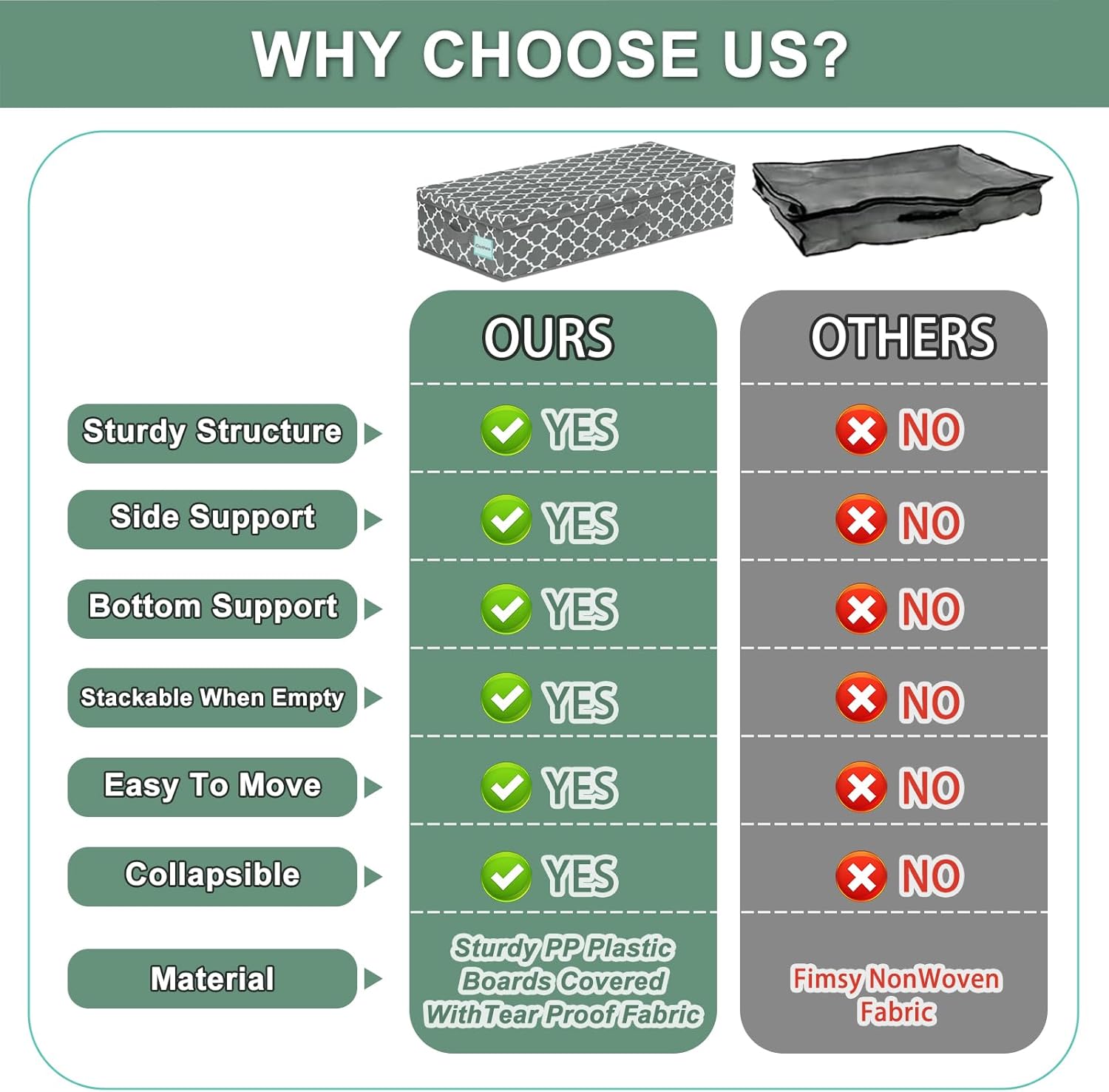 - 👍STURDY STRUCTURE WITH CONVENIENT HANDLES: Constructed with strength in mind, the under bed storage boxes are built to withstand daily use. This under-bed storage features a sturdy structure with 3 reinforced handles that provide a reliable way to move and manage your stored items with ease. It's easy to lift and pull out from beneath your bed. The sturdy structure ensures durability and reliability. Also a benefit for residential university graduate, it can be used as a duffel bag or under bed storage.