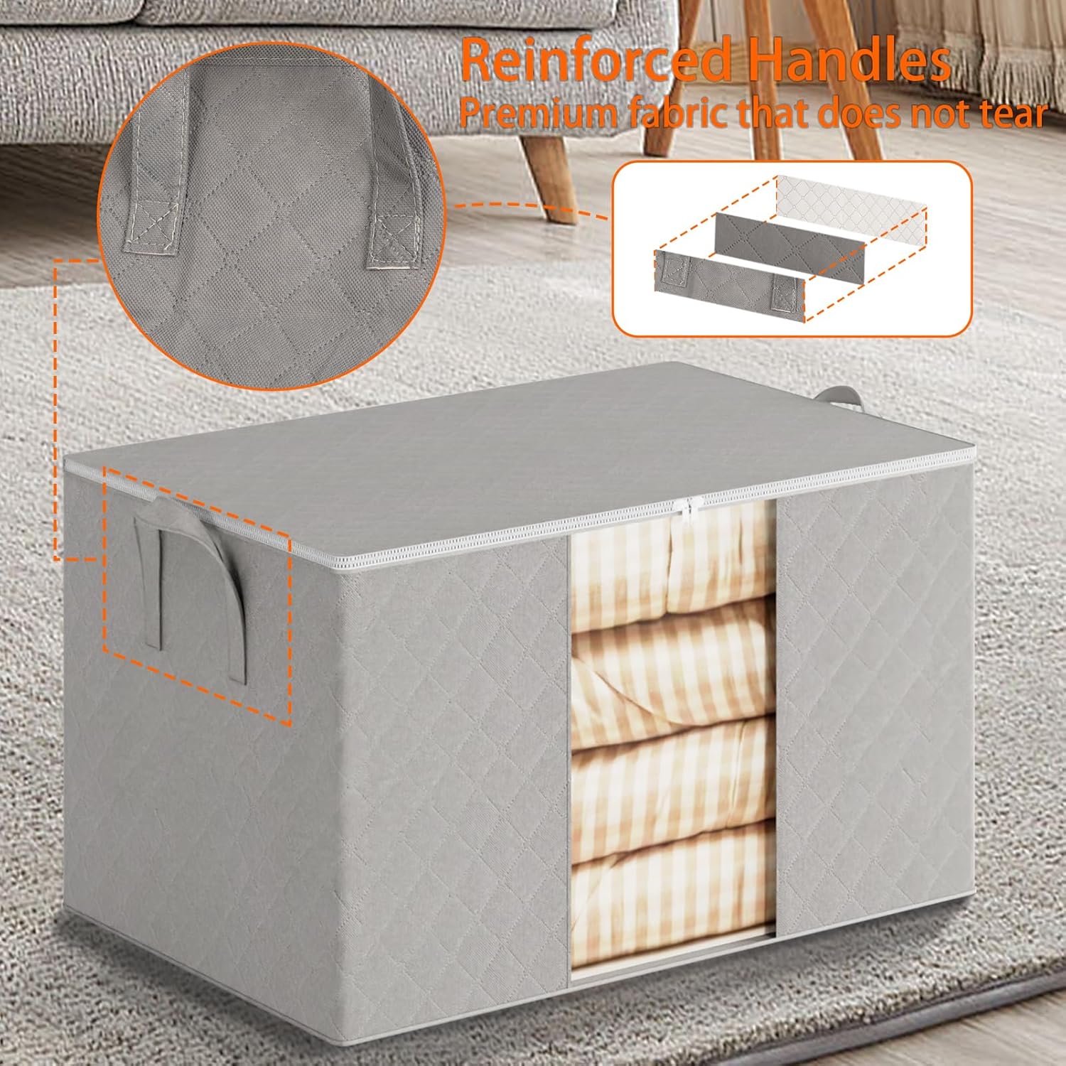 - Easy Access Zipper Closure: Enjoy effortless access to your belongings with the robust and smooth zipper closure on these comforter storage bags. The sturdy, snag-free zipper provides secure storage, protecting your items from dust and moisture.