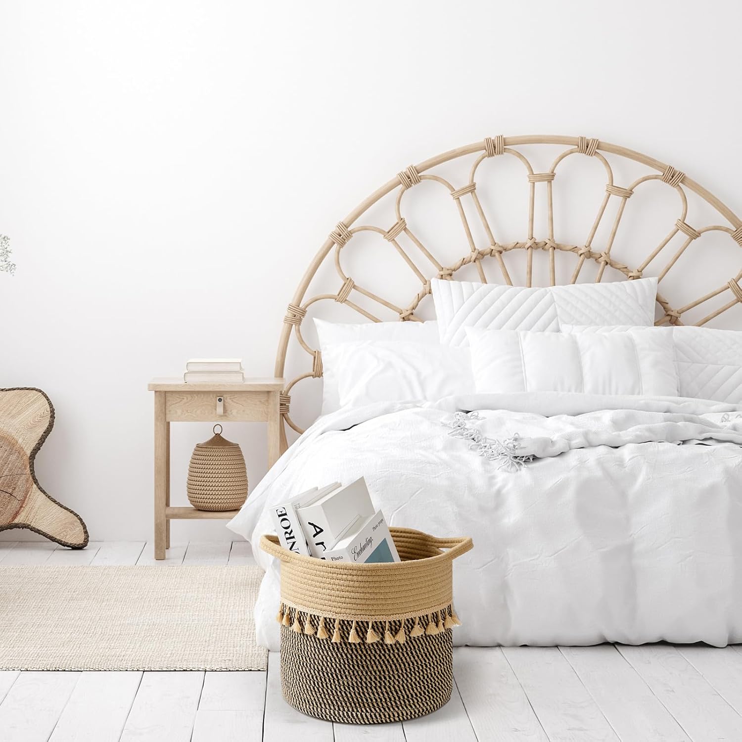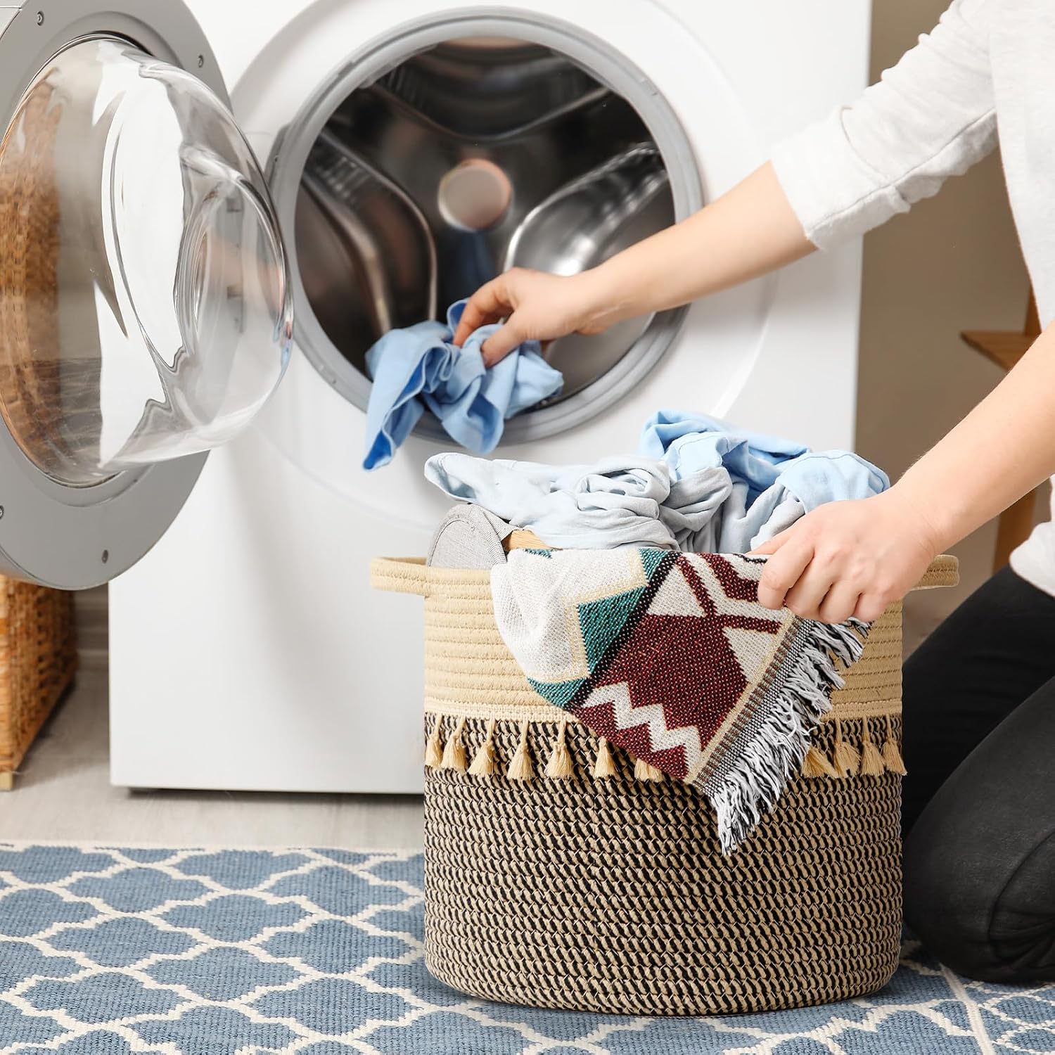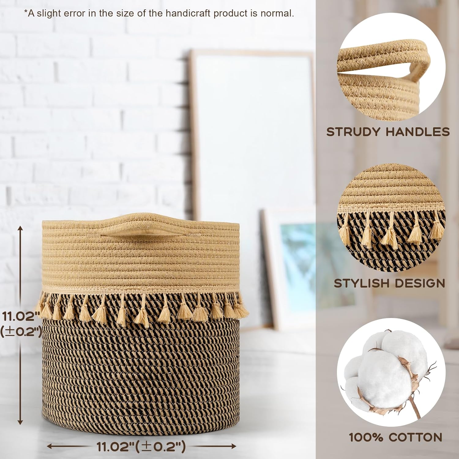 - Sturdy and Stylish: Our trendy boho tassels with cotton rope woven baskets for storage are a unique addition to your home decor. Stand out from the competition, the sleek round shape and well-crafted handles make it a must-have statement piece in any space. Available in 7 colors, you can easily find a basket organizer that complements the existing color scheme of your living room, bedroom, bathroom, baby room.