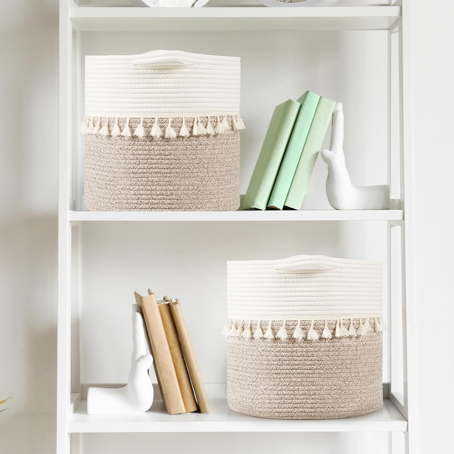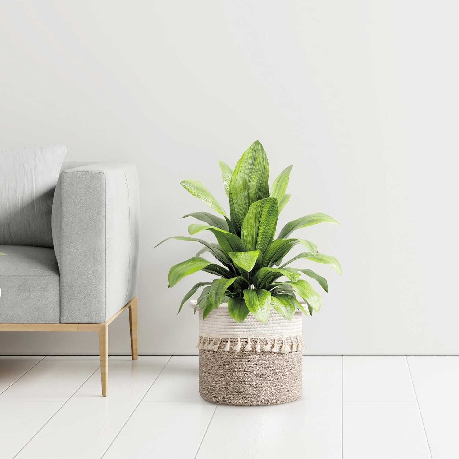 - Sturdy and Stylish: Our trendy boho tassels with cotton rope woven basket is a unique addition to your home decor. Stand out from the competition, the sleek round shape and well-crafted handles make it a must-have statement piece in any space
