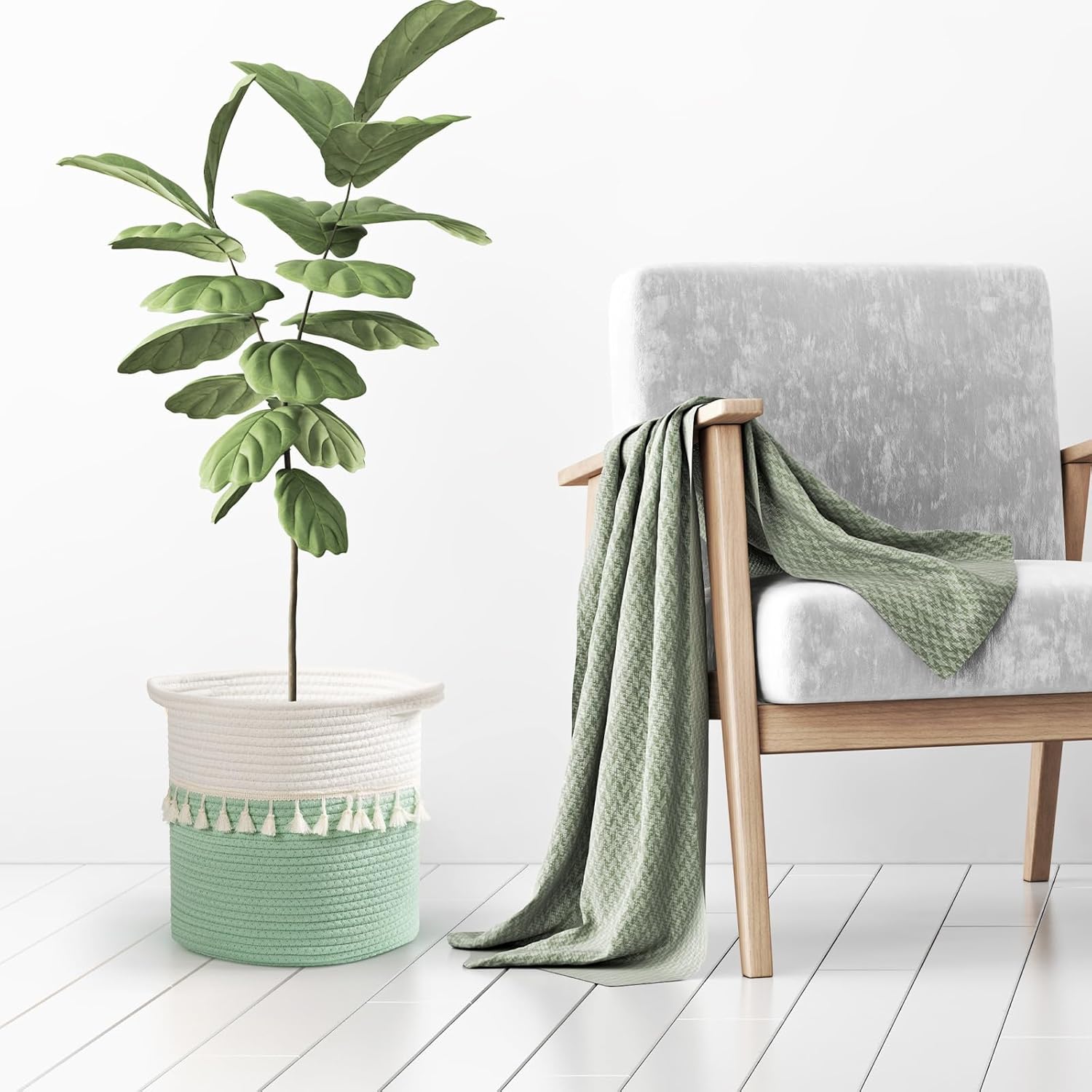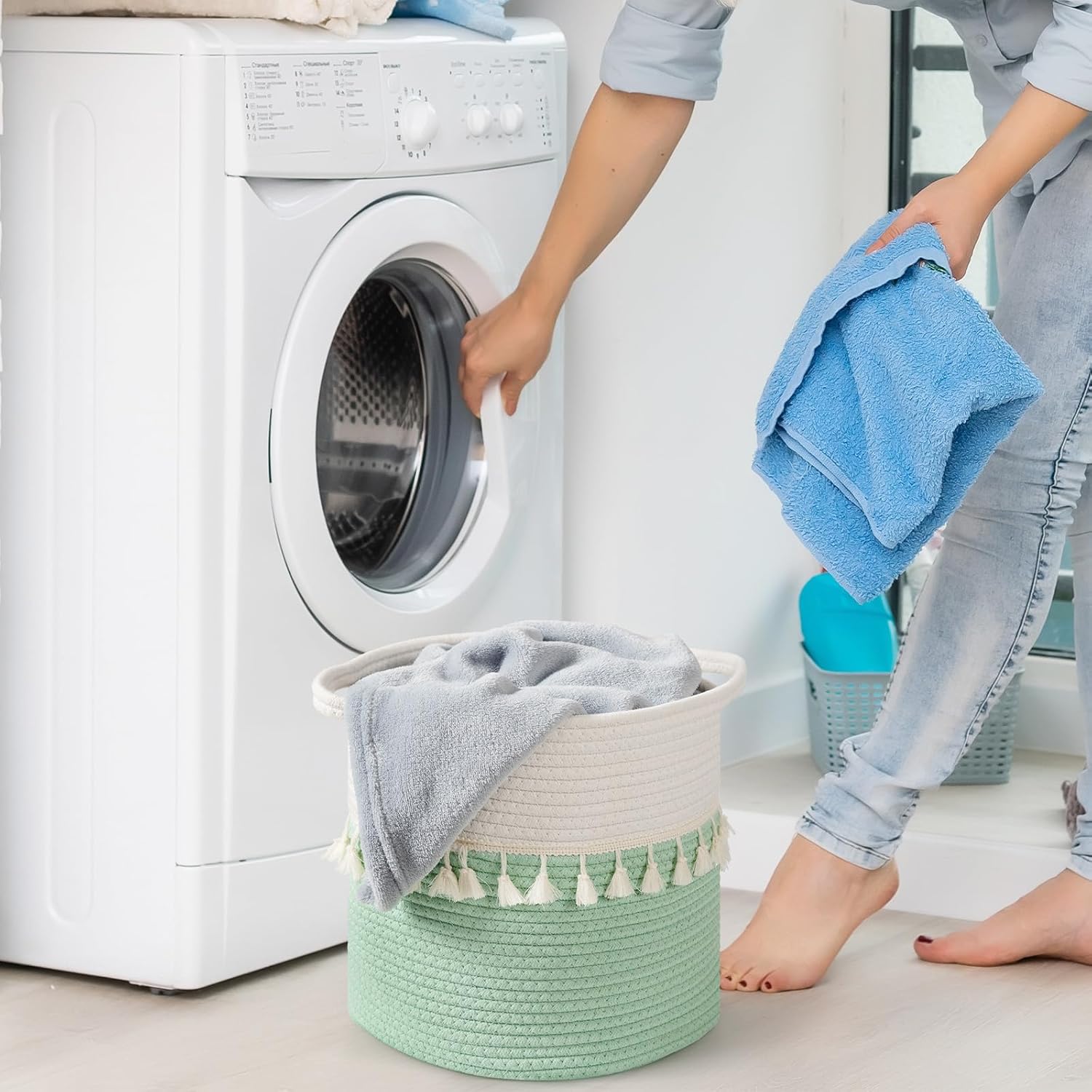 - Sturdy and Stylish: Our trendy boho tassels with cotton rope woven baskets for storage are a unique addition to your home decor. Stand out from the competition, the sleek round shape and well-crafted handles make it a must-have statement piece in any space. Available in 7 colors, you can easily find a basket organizer that complements the existing color scheme of your living room, bedroom, bathroom, baby room.