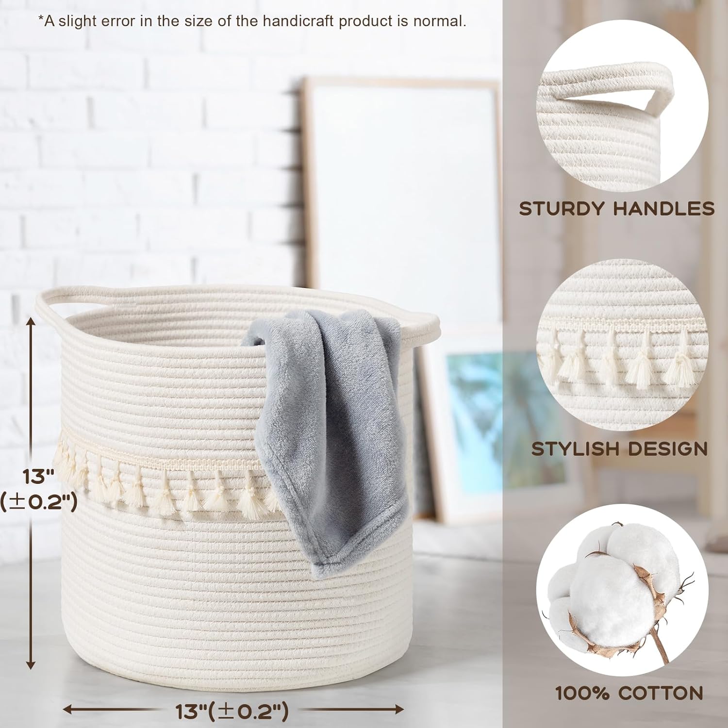 - Sturdy and Stylish: Our trendy boho tassels with cotton rope woven basket is a unique addition to your home decor. Stand out from the competition, the sleek round shape and well-crafted handles make it a must-have statement piece in any space