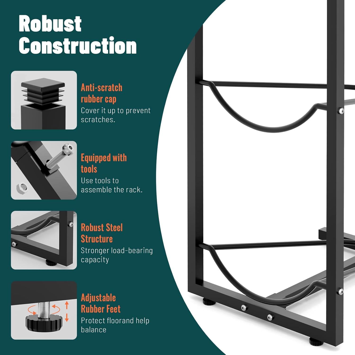 - Innovative Stability: Our water bottle rack features an innovative structure with a frame made of square steel tubes. By centrally positioning the support column, it forms a stable triangular support, ensuring the rack is more secure and virtually wobble-free.