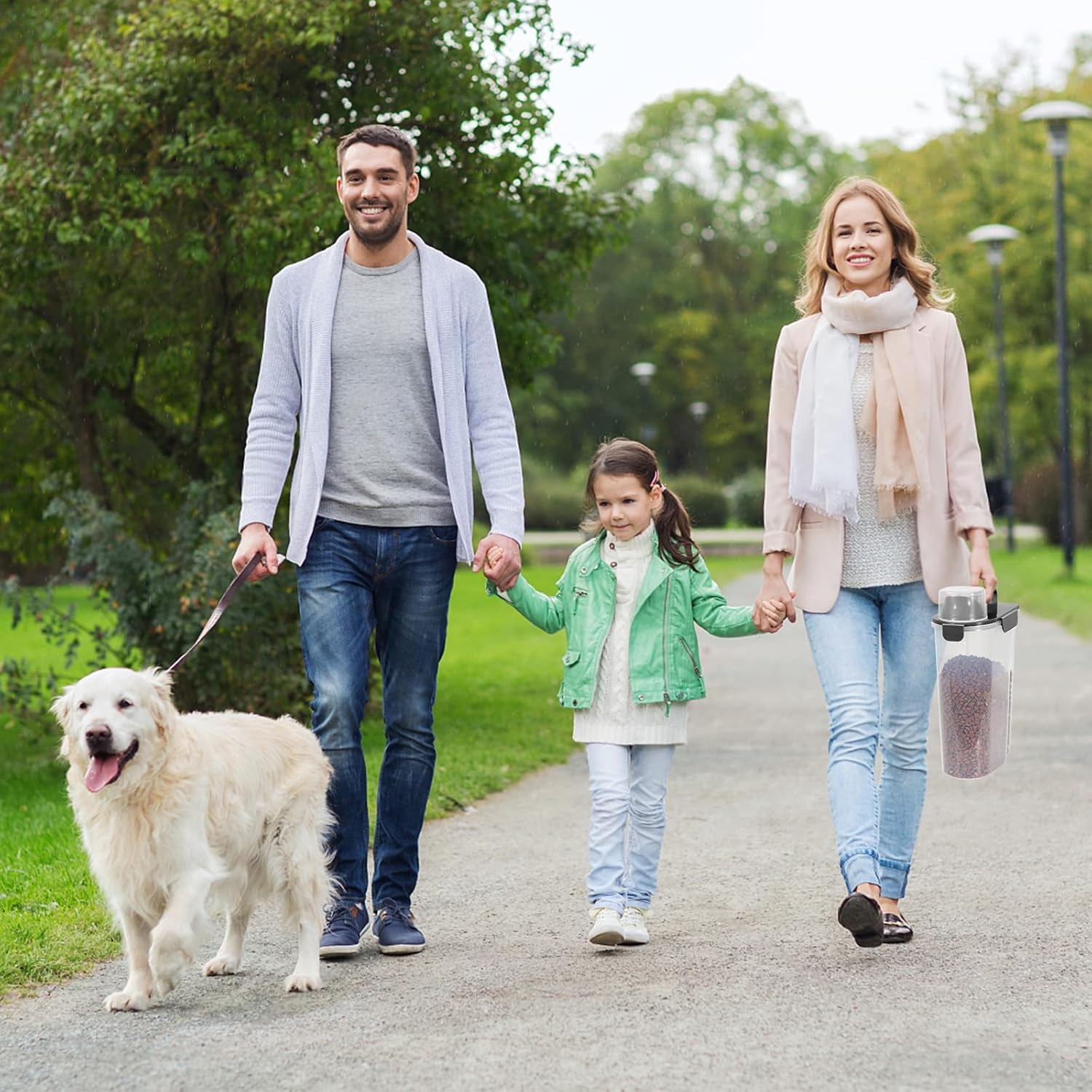 - FUNCTION : This airtight dog food container with portable handle has an airtight design,-has 2 silicone seals and 4 sealing buckles,which can keep your food dry and fresh, the portable handle and large spout design can easily Easily pours food out,also perfect for traveling, hiking, camping or picnicking with your dog。