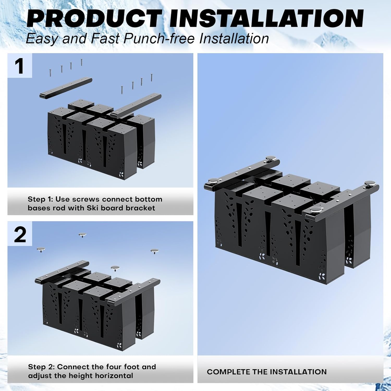 - Fast Installation:This ski rack comes with assembly instructions and all necessary hardware for 2-minutes quick installation. The punch-free design allows you can move anywhere. making it ideal for permanent and temporary ski board storage.
