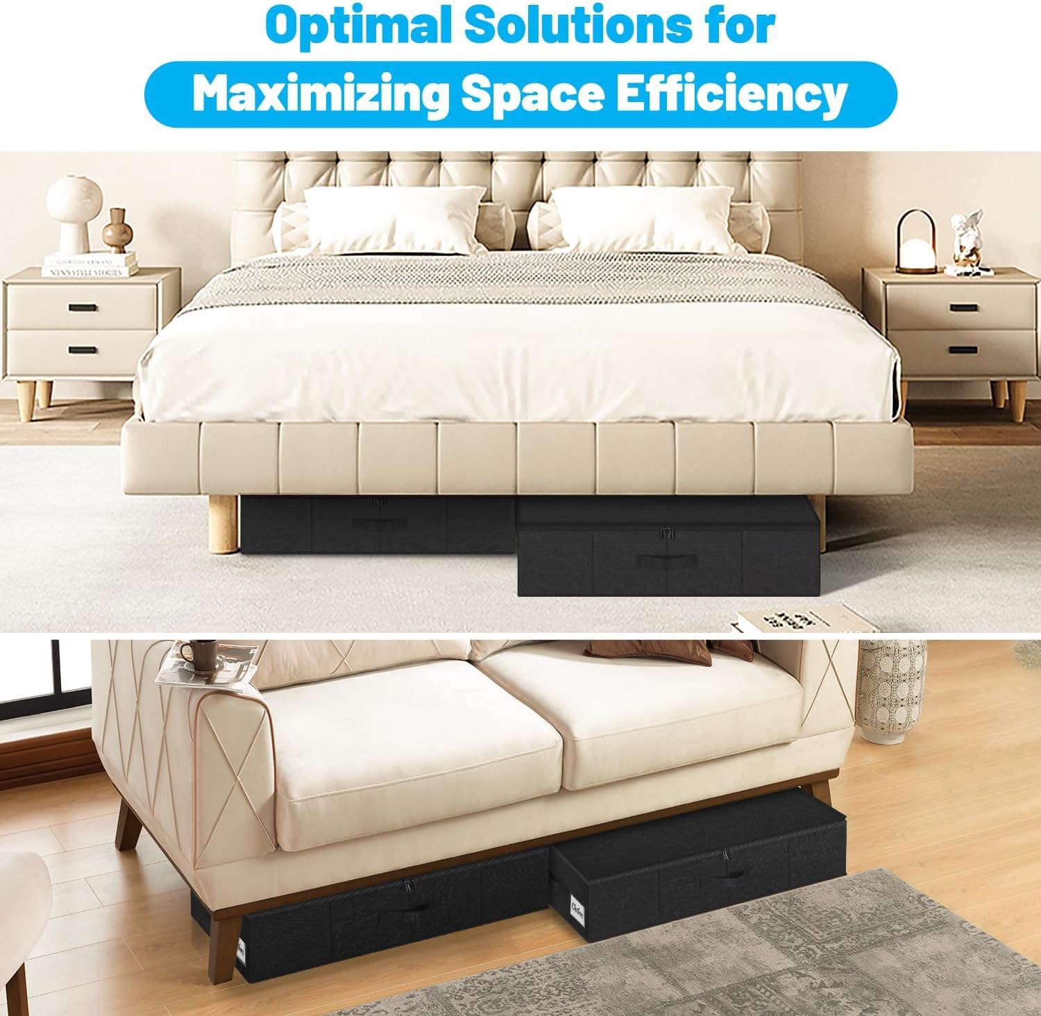 - Spacious Design with Ample Capacity: Measuring 30" x 16" x 6.7", the under bed storage containers of the Space series provide ample space for clothes, comforter, bedding, shoes, toys and blanket storage. Their large capacity is ideal for keeping your room clutter-free, while the low profile under bed storage ensures they fit effortlessly under beds and sofas, making them a versatile solution for closet organizers and storage.