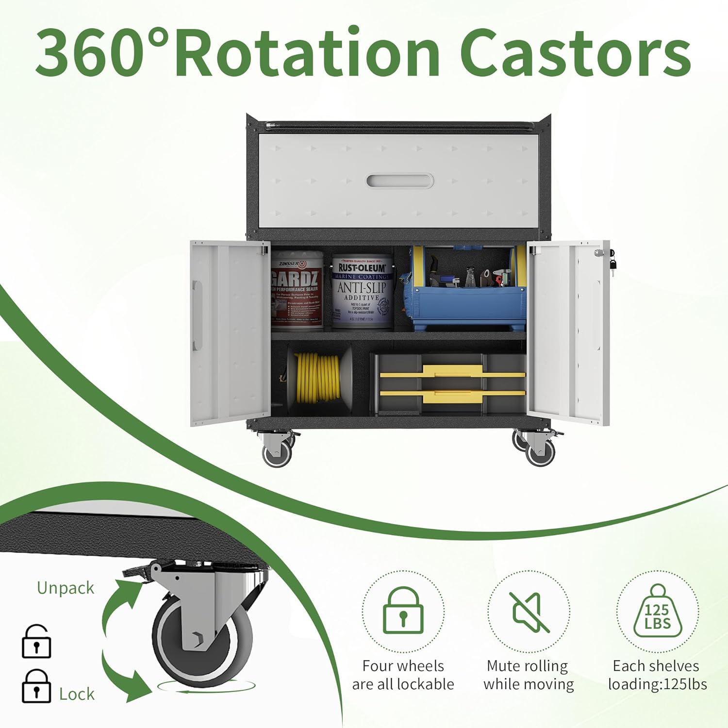 - Safety Lock: This tool cabinets on wheels is equipped with two keys to protect your personal belongings, built-in handle for you to open the door, easy access to things, double door design is simple and generous, suitable for most scenarios.