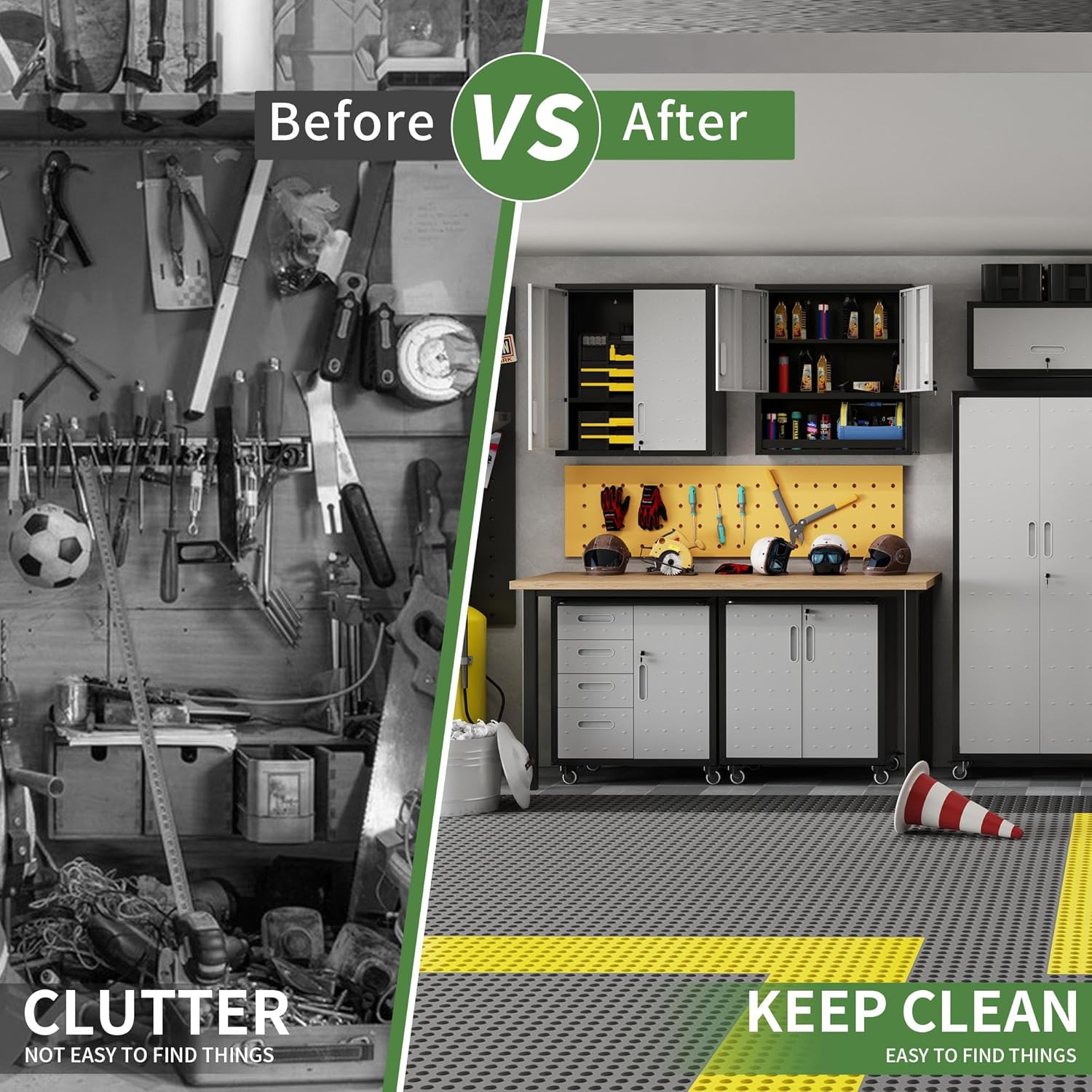 - Multi-scene Use: Wall cabinet is suitable for home, garage, warehouse, kitchen, tool room, especially for garage and tool room, for you to place tools and daily necessities to provide sufficient safe storage space, keep the room clean.