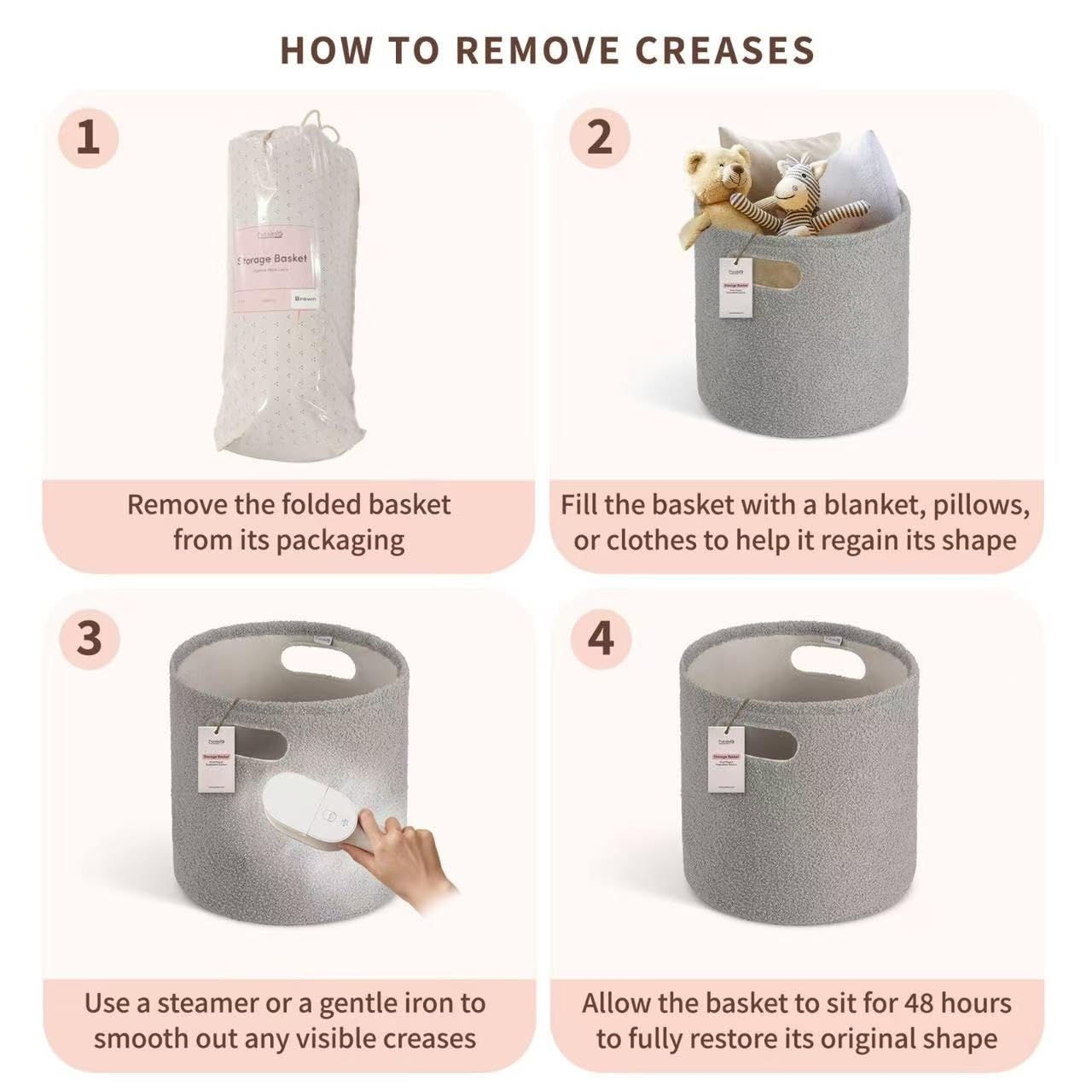 - Decorative and Versatile: This regular basket adds style and function to any room. Fill with pillows and steam to remove creases. Let sit 48 hrs to regain shape. Great for organizing while adding a stylish touch to any room.