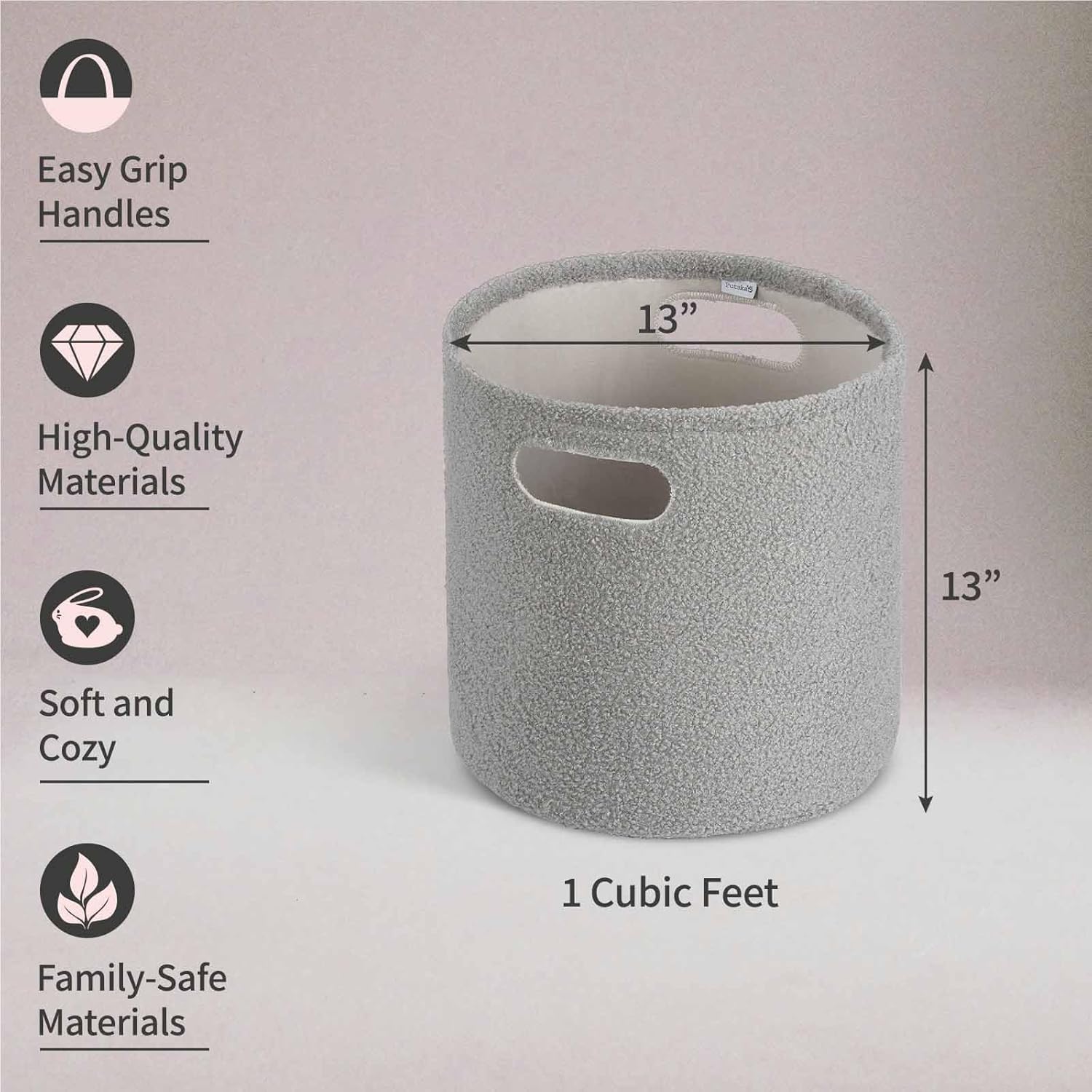 PUTSKA Basket – Round Storage for Toys and Clothes, Stuffed Animals – Soft Baby Girl Basket for Nursery, Kids Room, Bedroom, Living Room – Regular, Grey