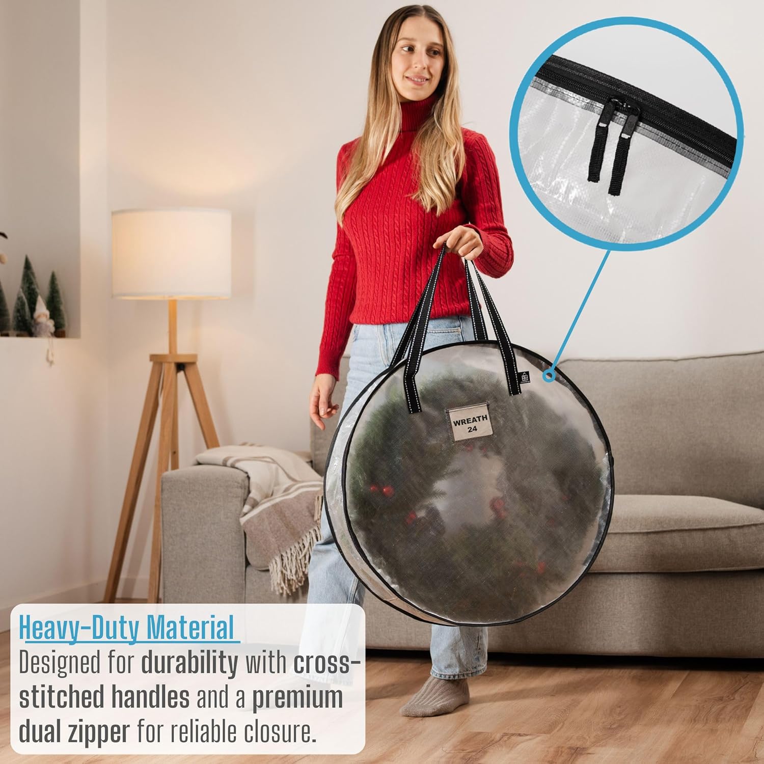 - EASY ACCESS: The dual zipper system opens wide for effortless loading and unloading of wreaths, ensuring simple and convenient holiday storage.