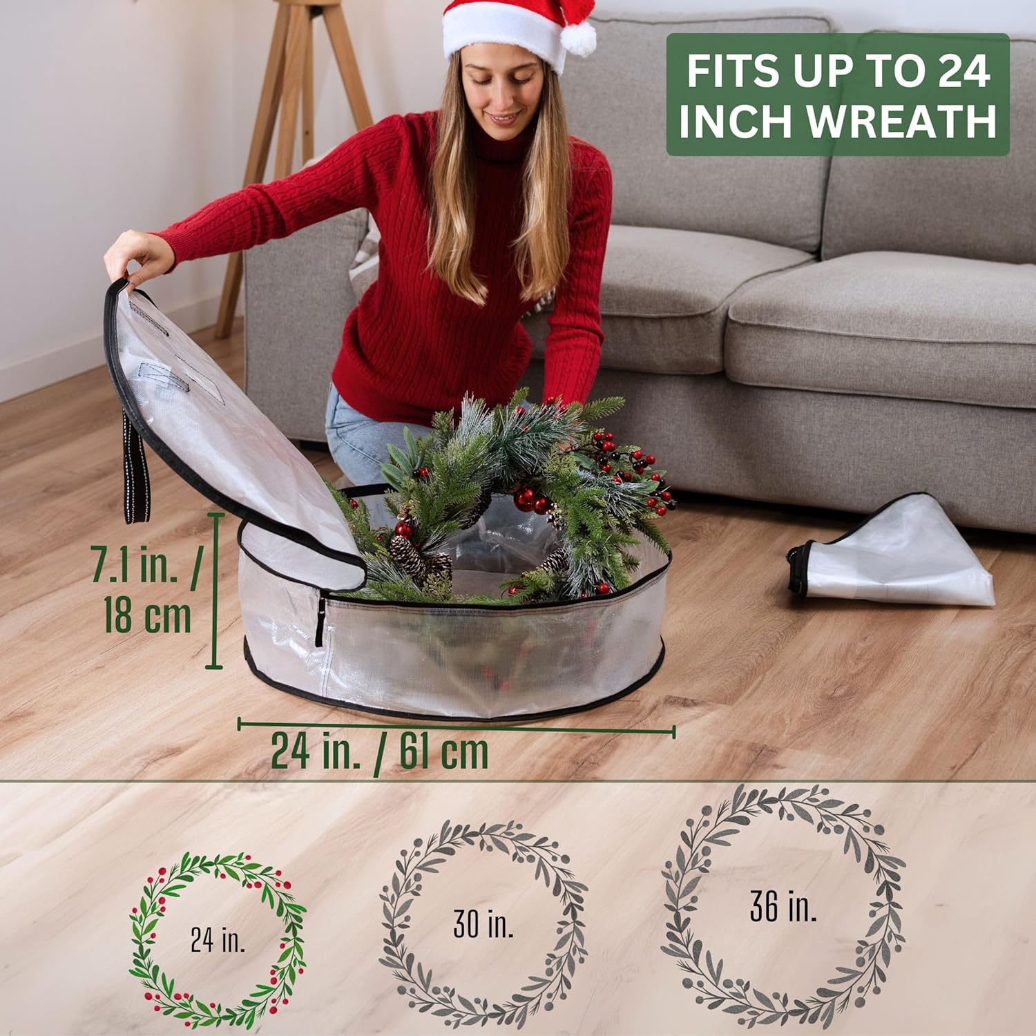 - PERFECT FOR WREATH STORAGE: ο»ΏThis wreath storage container provides ample space to store and protect up to 24-inch wreaths, as well as garlands and holiday lights.