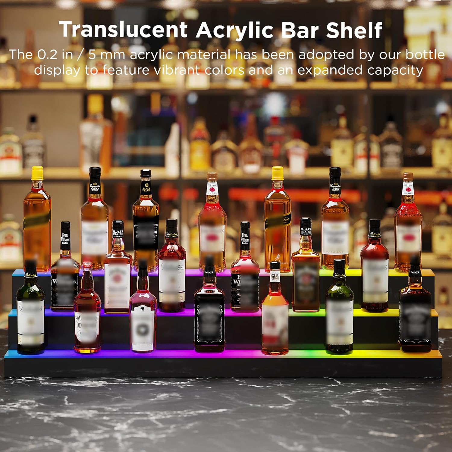 - Quality Materials - Constructed from premium acrylic, this LED liquor shelf boasts superior wear resistance, hardness, and durability. It accommodates multiple bottles, and its high transparency makes it an excellent choice for showcasing stunning lighting effects. The smooth surface ensures effortless cleaning.