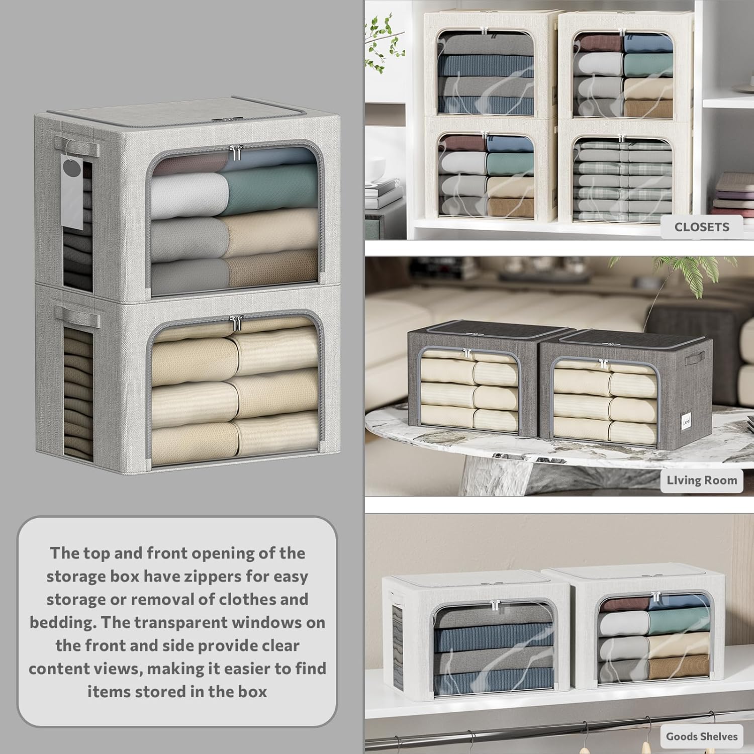 - Double Opening Design with Large Clear Windows - Our storage bins are equipped with zippered top and front openings, which make it extremely easy for you to access your items. There are transparent windows on the front and sides, so you can clearly see what's inside without having to take out the stacked bins when you want to find something.