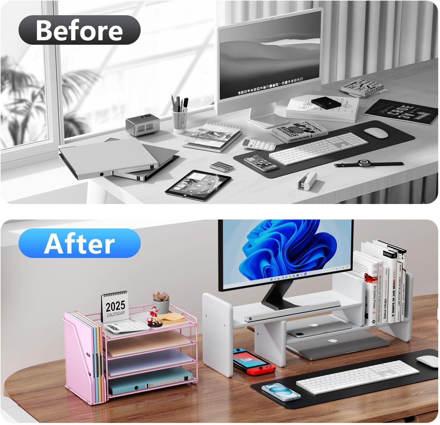 - ăVersatile StorageăThis desktop organizer features multiple storage compartments and a separate magazine holder, offering a variety of storage options to expand your desktop space. It effortlessly organizes your files, books, A4 papers, and office accessories, making it the perfect file organizer for your desk.