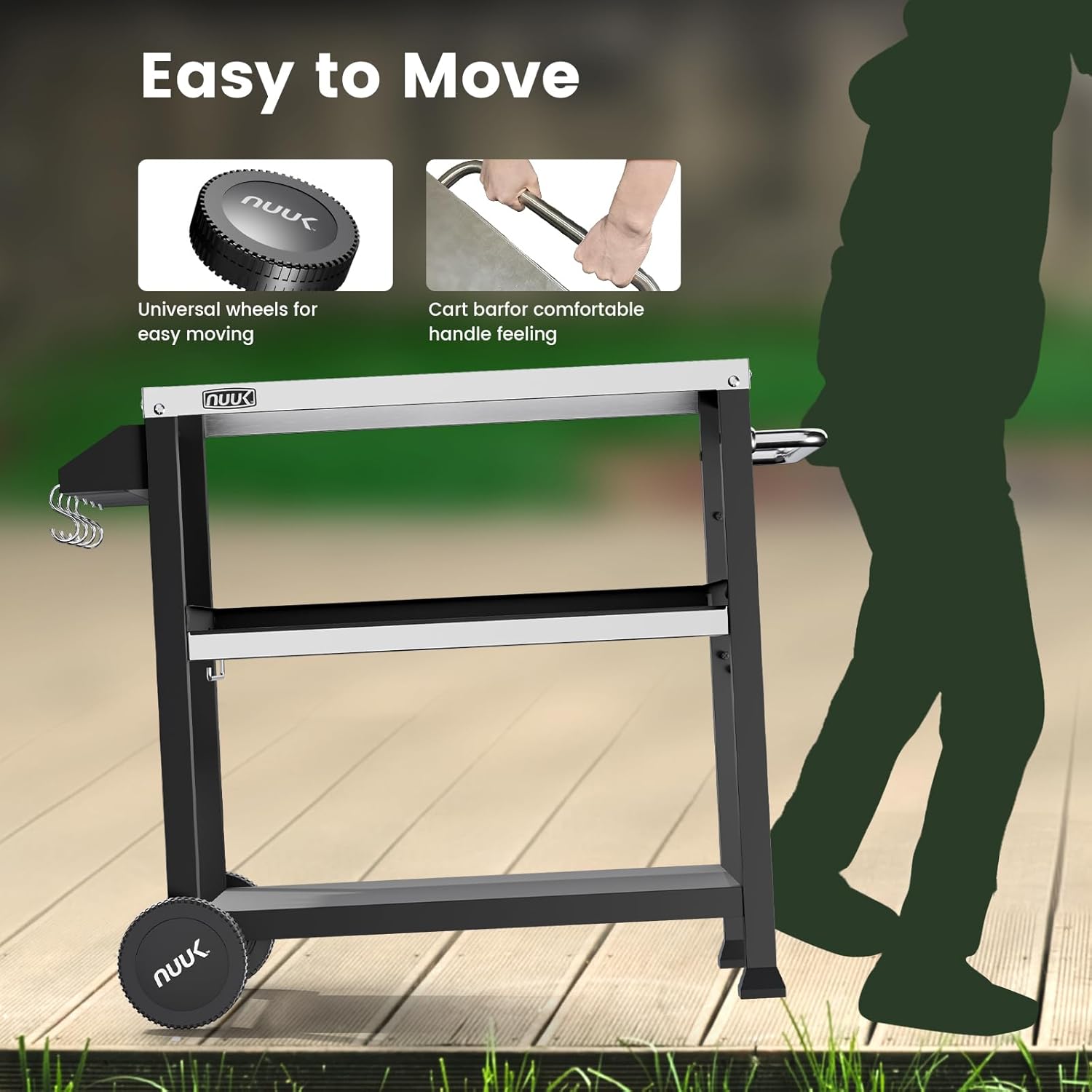 - Convenient mobility - Experience mobility and convenience with this outdoor grill cart. Equipped with 2 premium wheels, effortlessly move the cart into place for a seamless outdoor cooking experience that adapts to your needs.